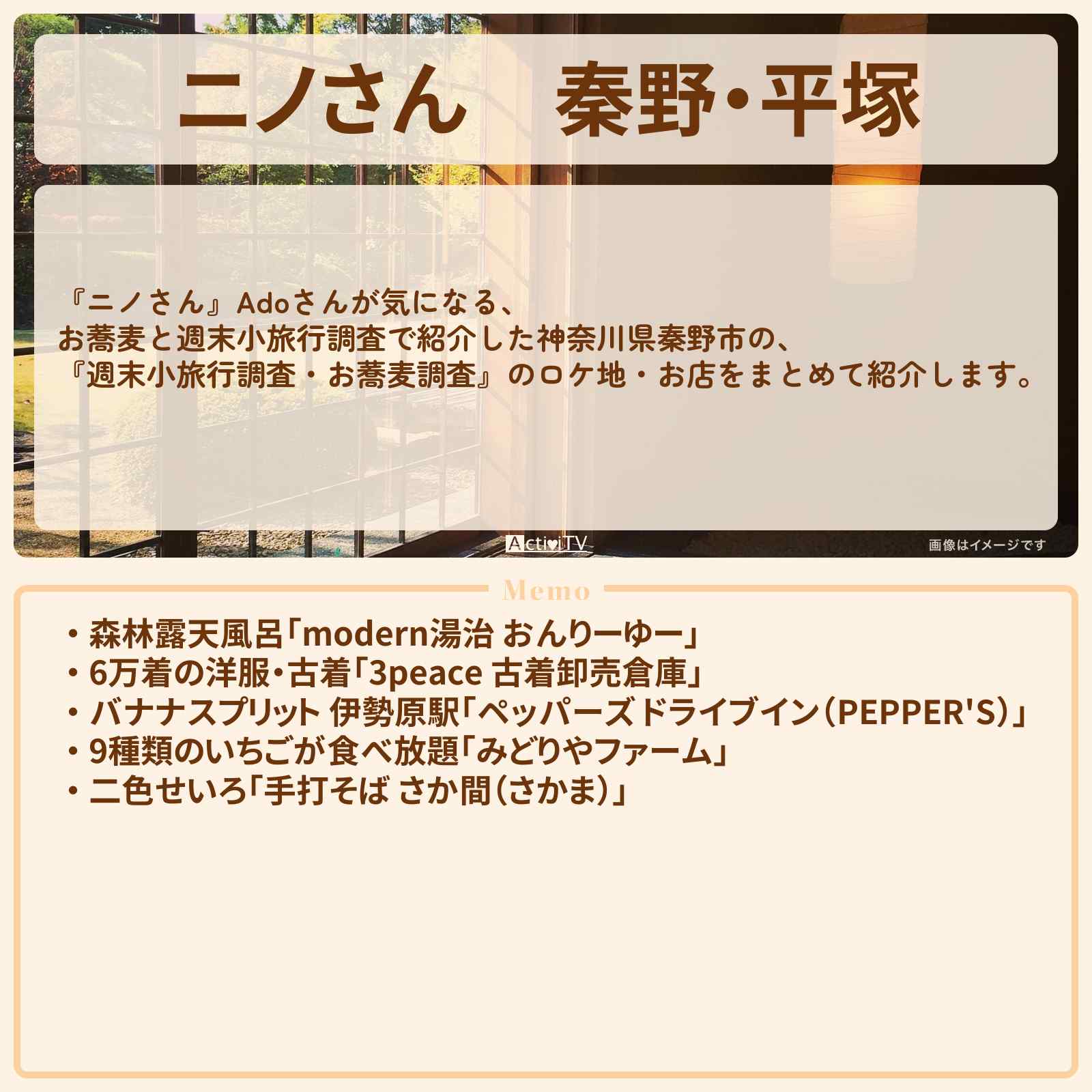 大自然の温泉のmodern湯治 おんりーゆー、6万着の古着の3peace、巨大スイーツのPEPPERS DRIVE-IN、9種いちご食べ放題のみどりやファーム、最後に2種類のそばを食べ比べできる手打そば さか間を宮下草薙が巡りました。