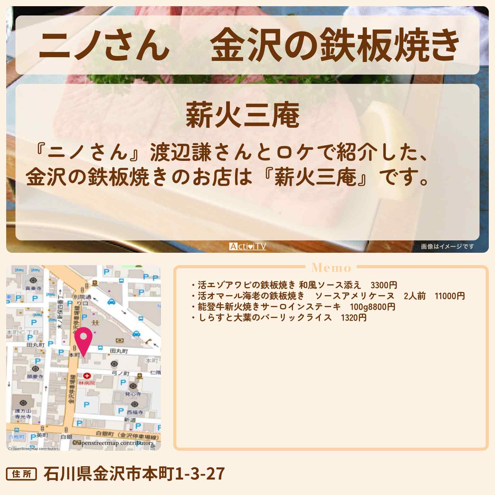 | 住所 | 石川県金沢市本町1-3-27 |