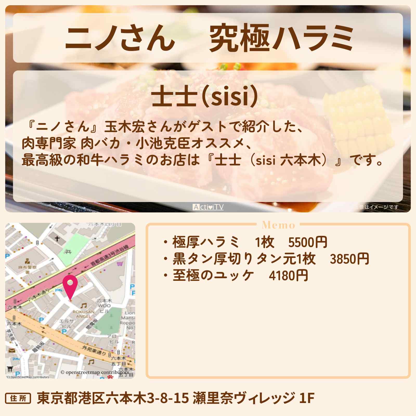 最高級の和牛ハラミ 六本木駅「士士(sisi)」
