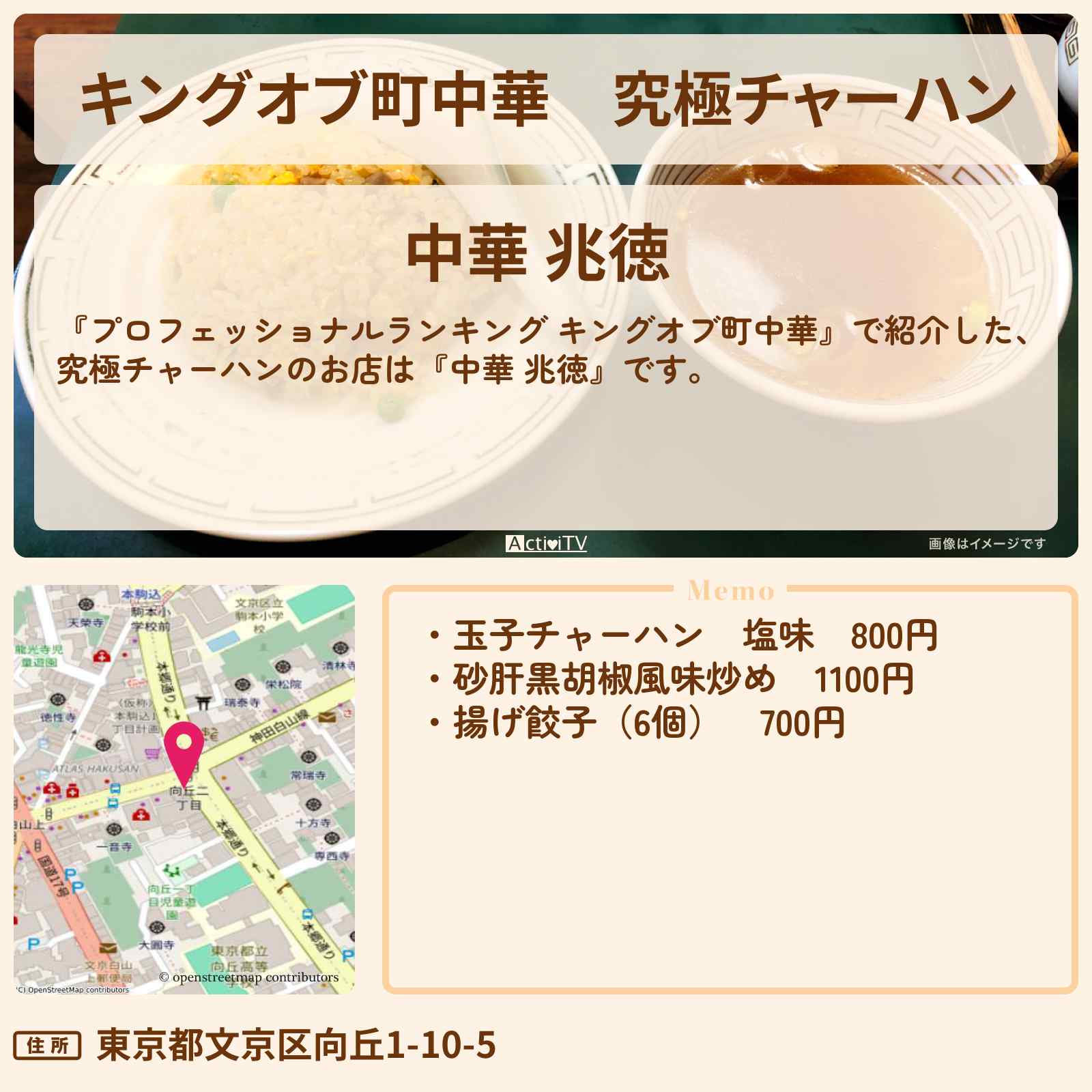 [中華好き人気店☆☆☆] こちらは『兆徳(上野/中華料理)』のお店ページです。実名でのオススメが252件集まっています。Rettyで食が好きなグルメな人たちからお店を探そう!…