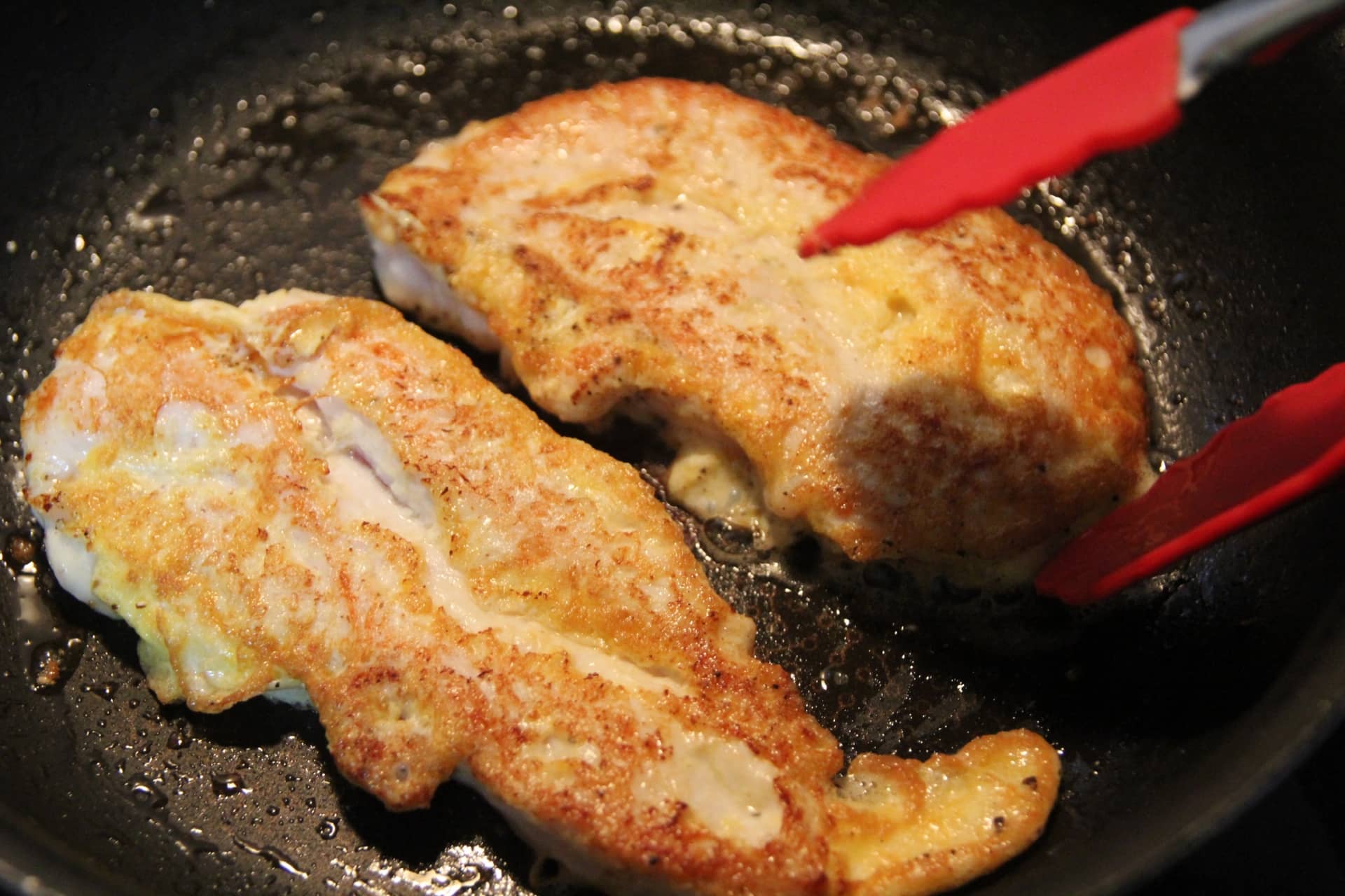 - 鶏肉をごま卵にくぐらせて並べて両面で4~5分焼く
