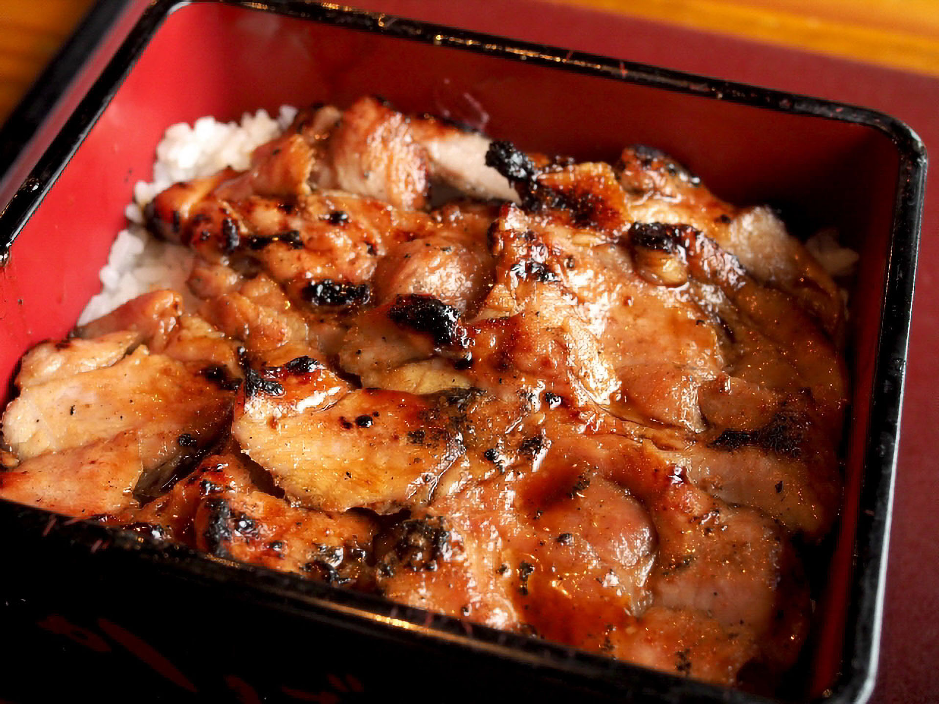 地元ブランド豚『相模豚』を備長炭直火で焼き上げご飯に秘伝のタレをくぐらせ丸ごとのせた重