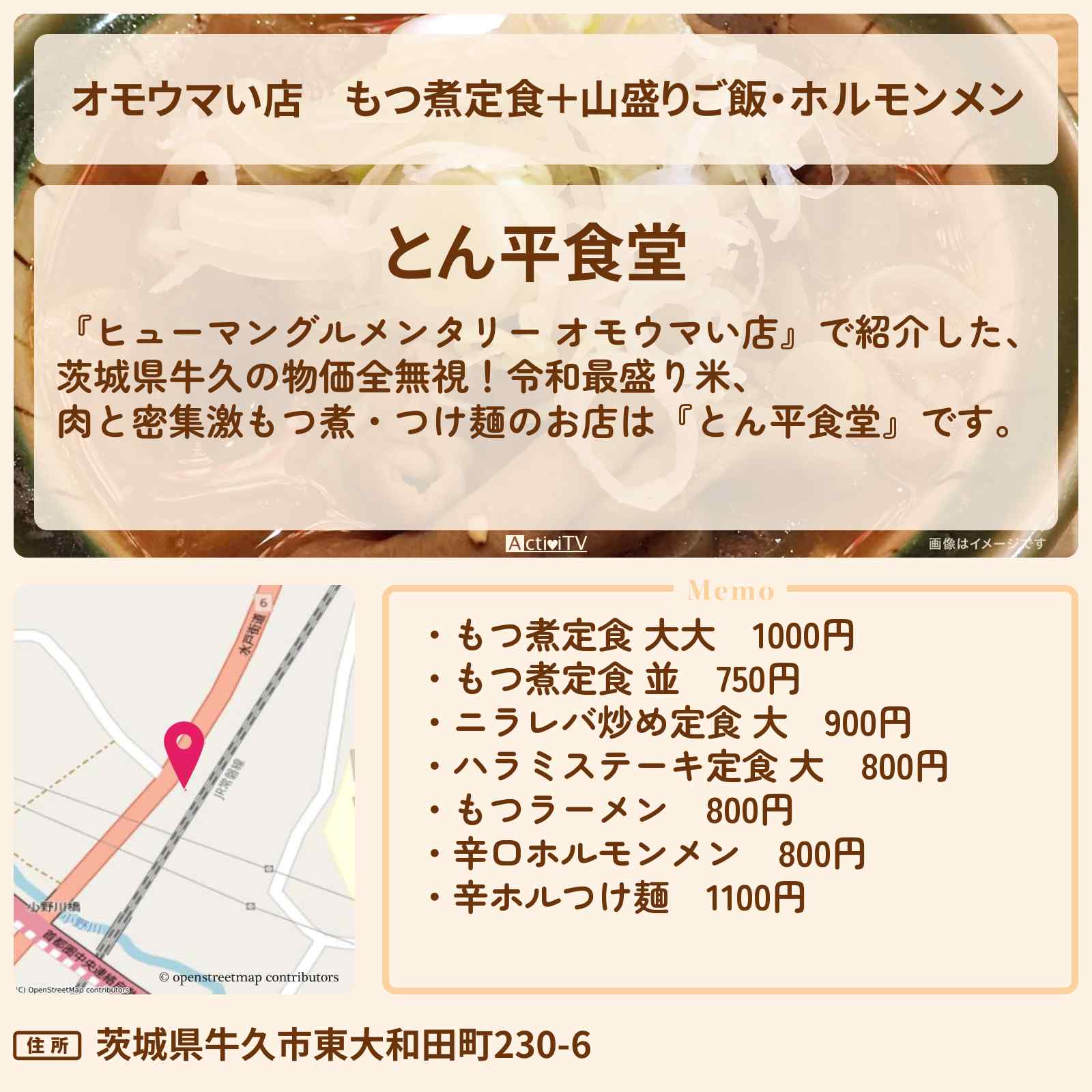 もつ煮・とん平食堂(茨城県牛久市) もつ煮込みや生モツの販売