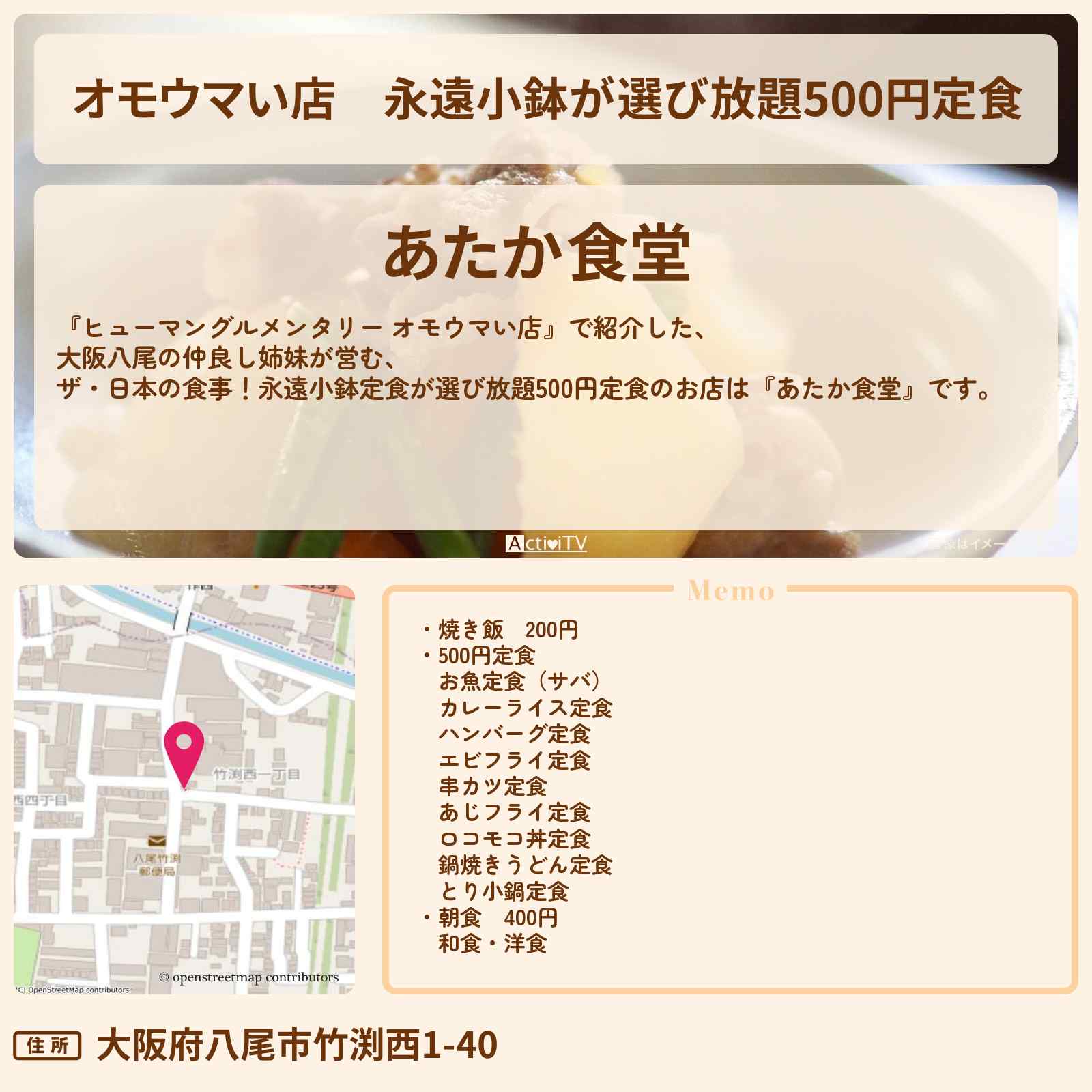 小鉢が選び放題500円定食 加美駅「あたか食堂」