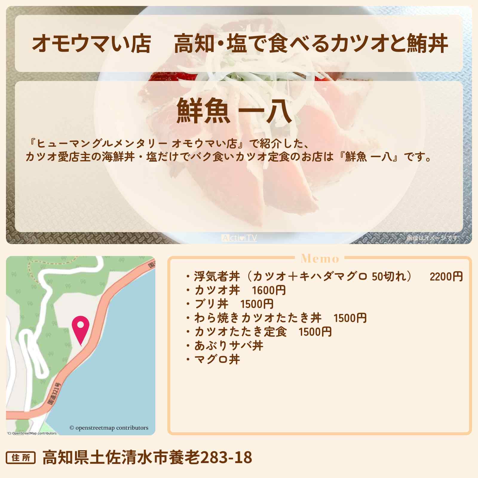 鮮魚 一八(土佐清水市/居酒屋/海鮮)の店舗情報・予約なら、お得なクーポン満載【ホットペッパーグルメ】!鮮魚 一八の地図、メニュー、口コミ、写真などグルメ情報満載です!…