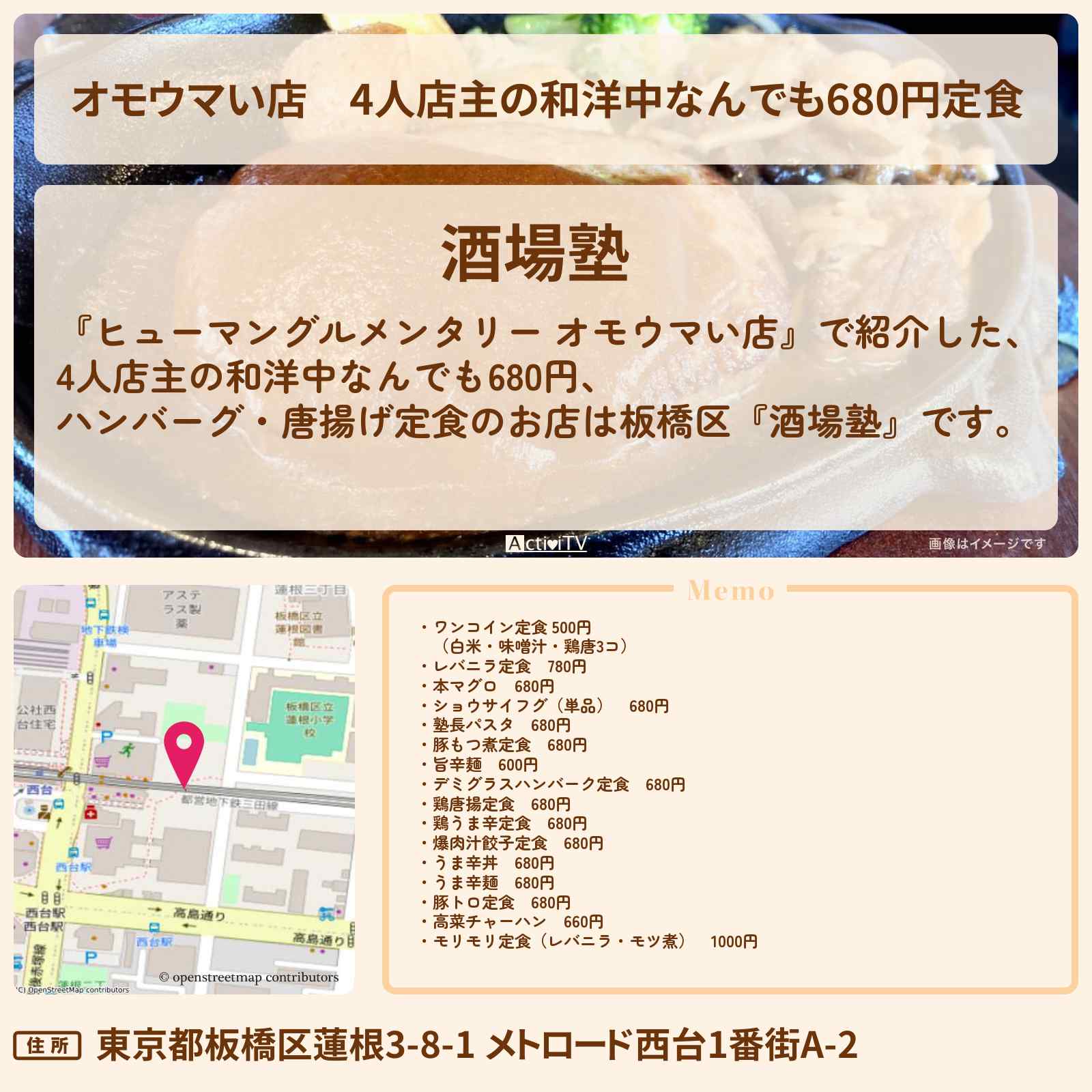 和洋中なんでも680円定食 西台駅「酒場塾」