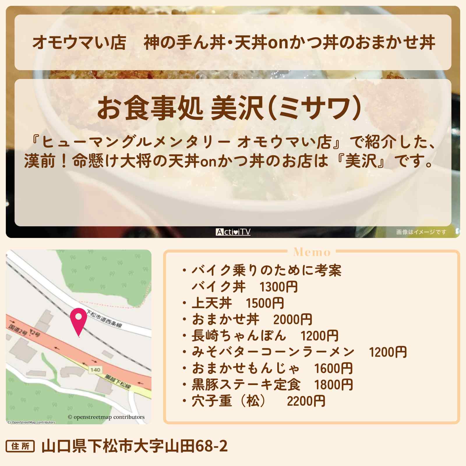 天丼onかつ丼「お食事処 美沢(ミサワ)」