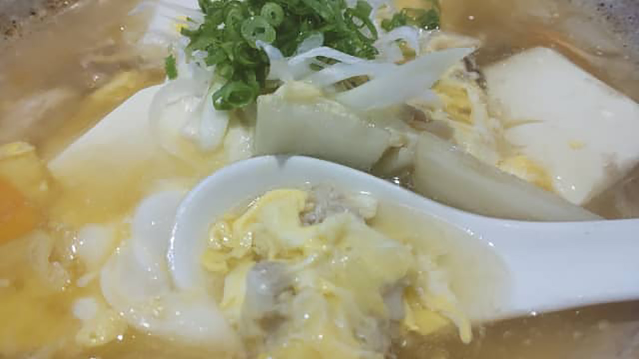 - スープ・塩・しょうゆ・ほたての身・汁・豆腐・いんげんを加える