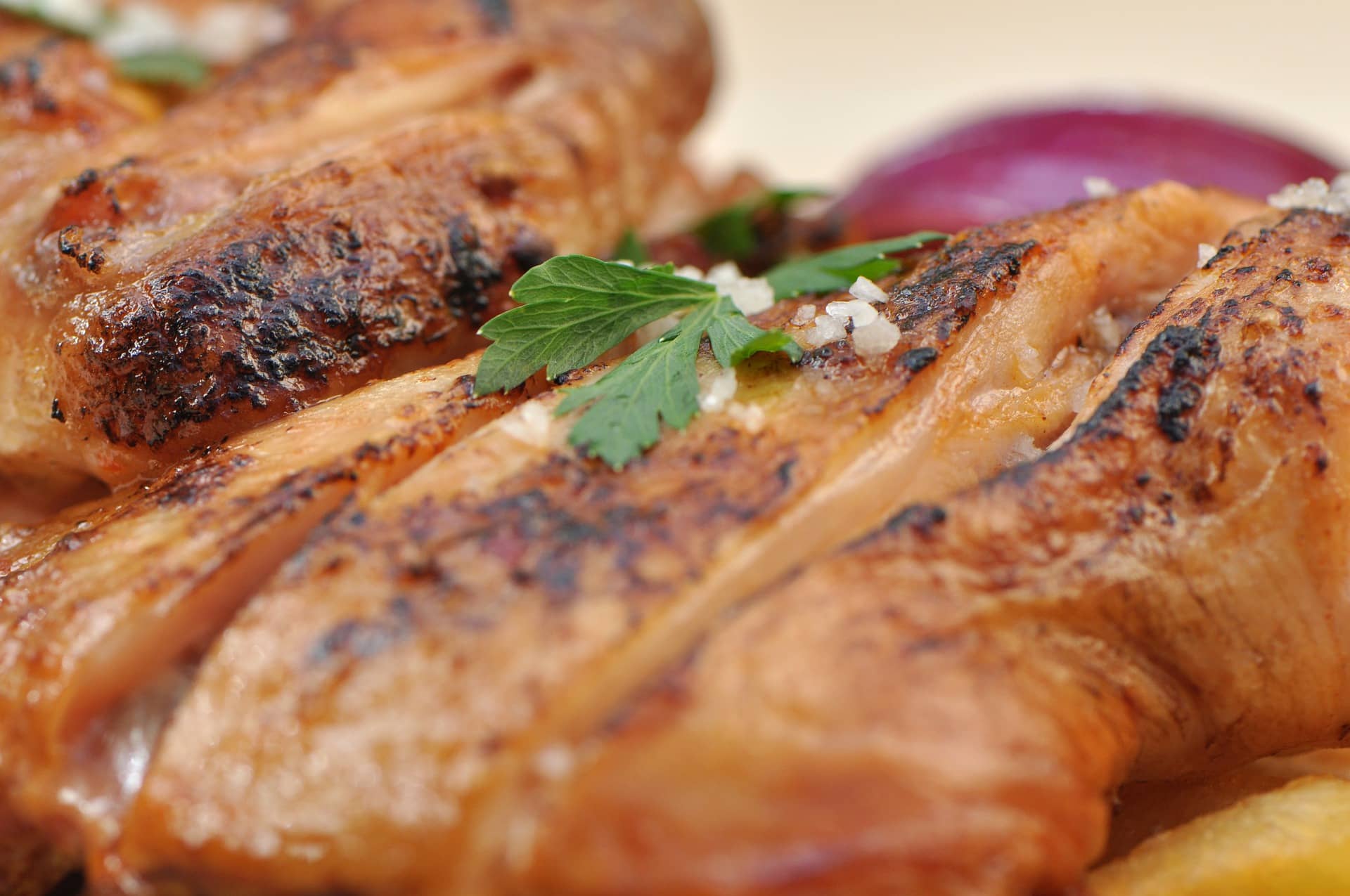 - 鶏肉の皮はパリッと仕上げるために取り除かずに残しておく