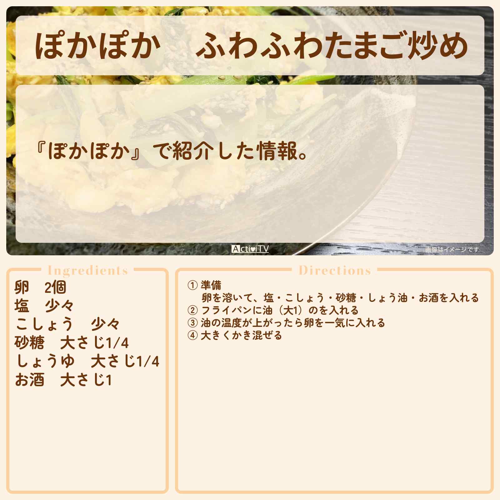 2025年9月25日放送の【ぽかぽか】で紹介した、柴田理恵・柴田理恵『塩昆布チャーハン』のレシピ・作り方。