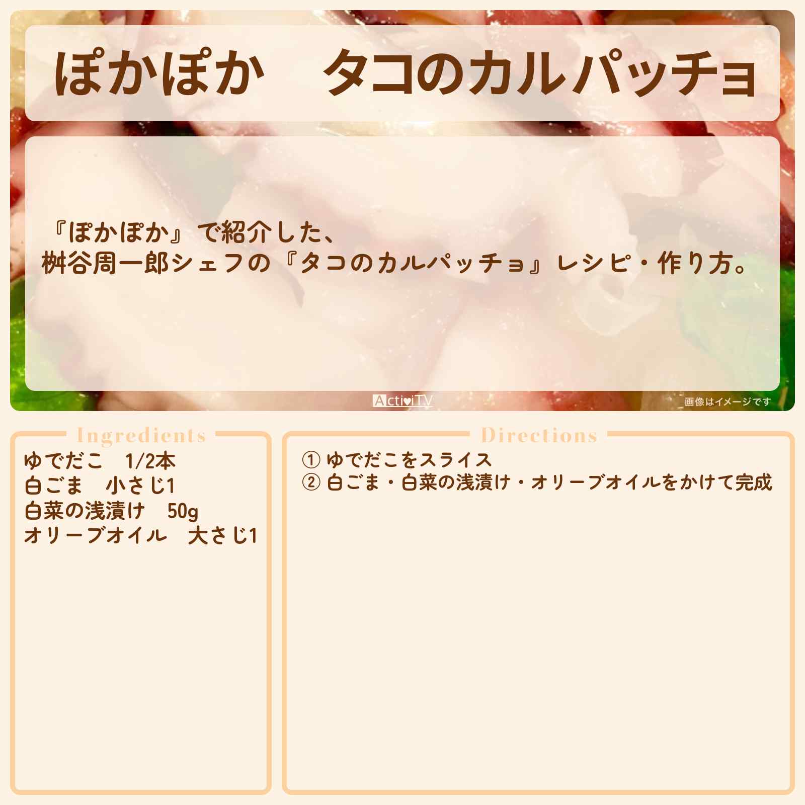 放送の【ぽかぽか】で紹介した、桝谷周一郎シェフの『タコのカルパッチョ』レシピ・作り方。