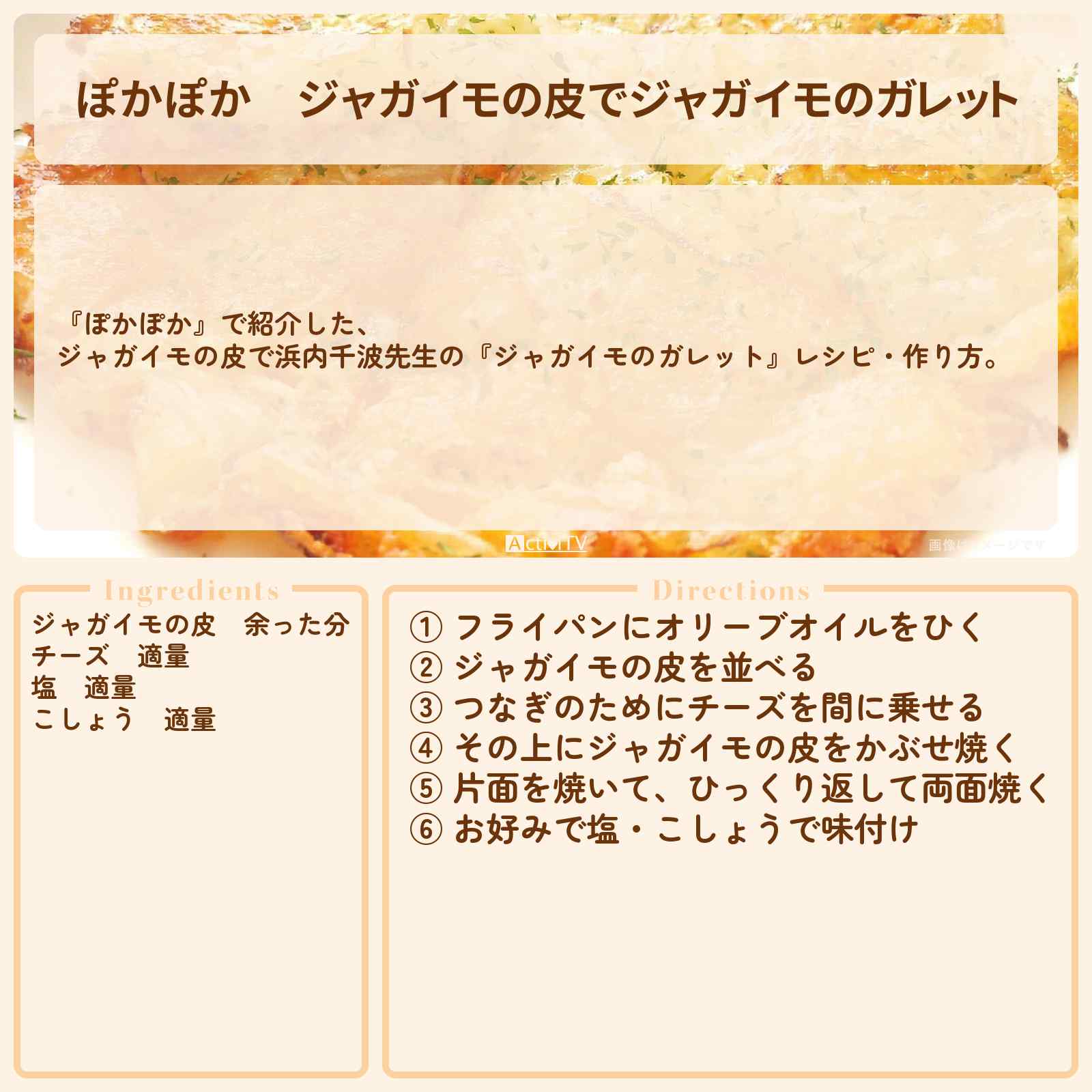 放送の【ぽかぽか】で紹介した、ジャガイモの皮で浜内千波先生の『ジャガイモのガレット』レシピ・作り方。