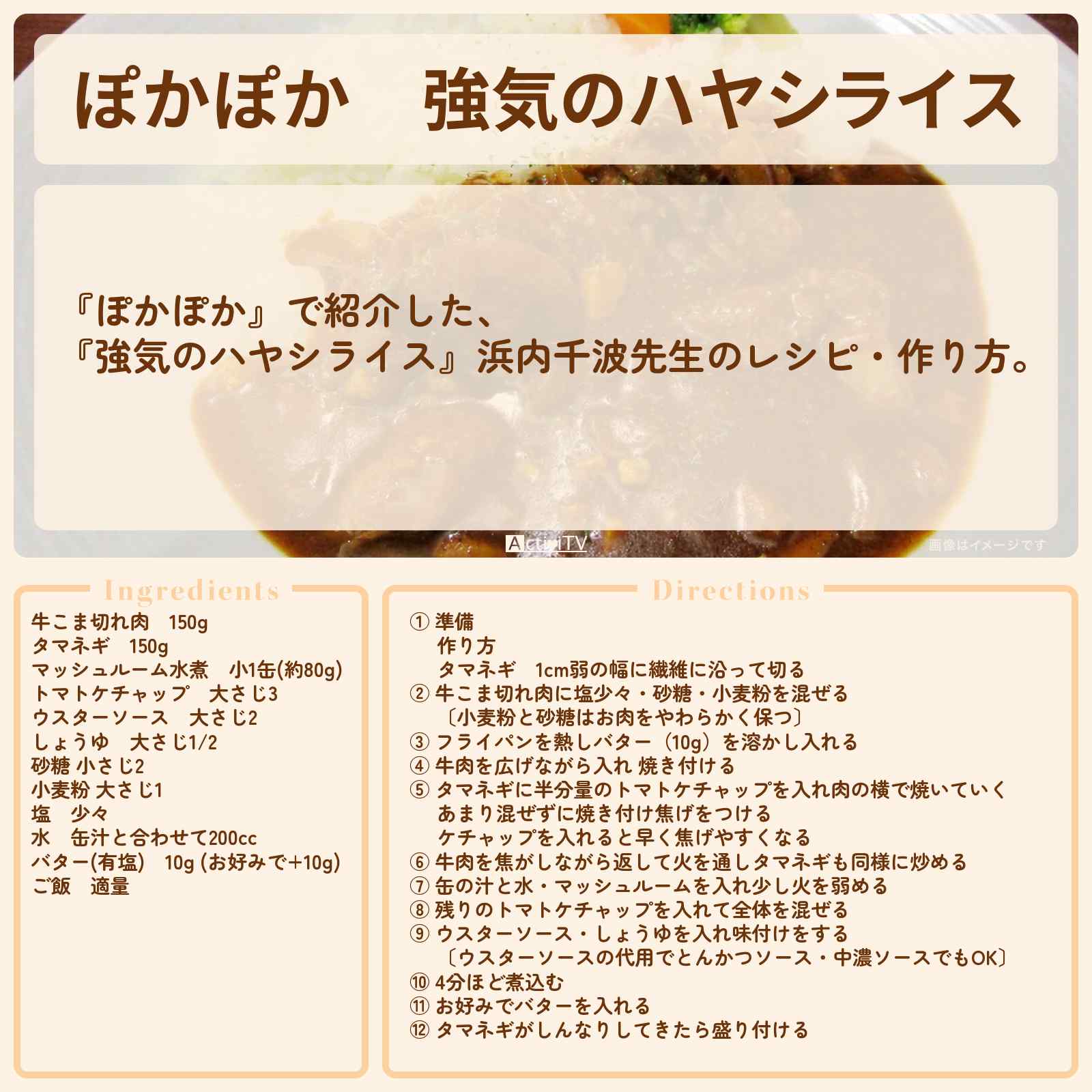 放送の【ぽかぽか】で紹介した、『強気のハヤシライス』浜内千波先生のレシピ・作り方。