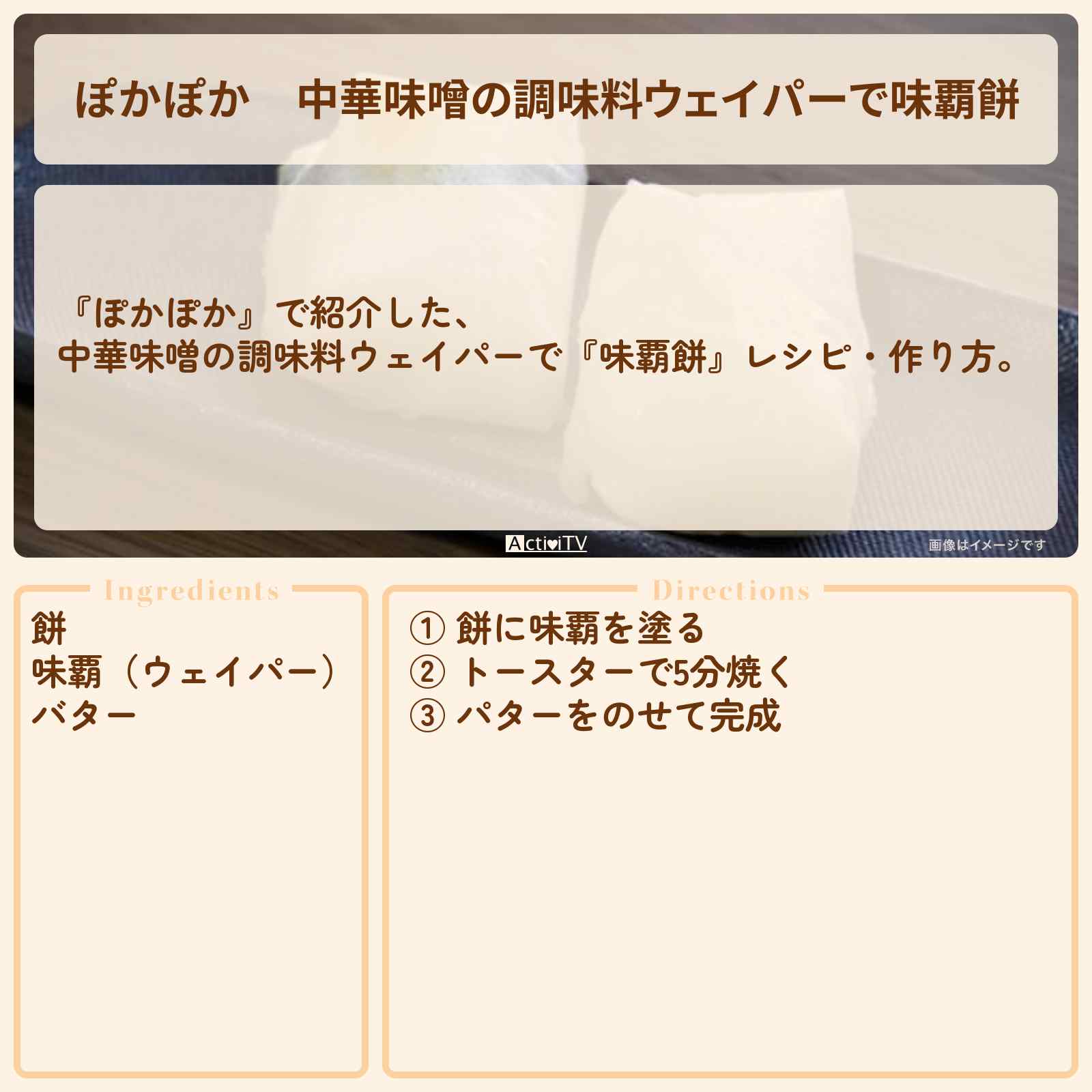 放送の【ぽかぽか】で紹介した、中華味噌の調味料ウェイパーで『味覇餅』レシピ・作り方。