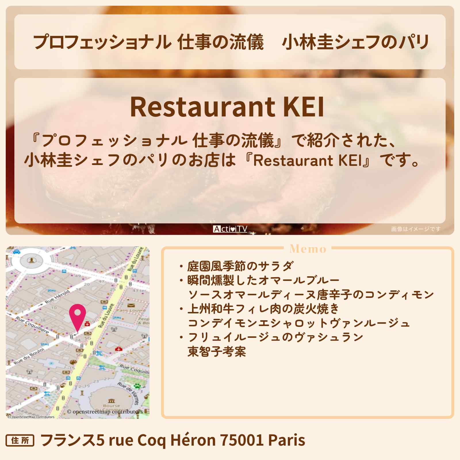 | 住所 | フランス5 rue Coq Héron 75001 Paris |