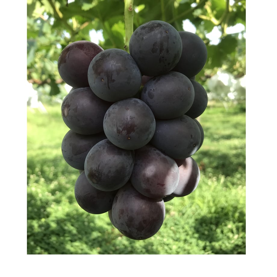 シャインマスカットよりも皮が薄く、パリッとした食感 - もぐり粒を作らないように35粒程度に間引く