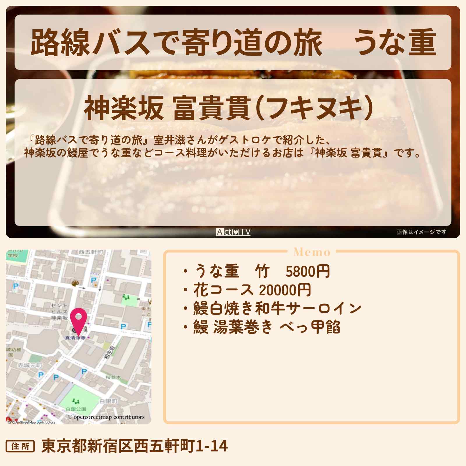 | 住所 | 東京都新宿区西五軒町1-14 |
