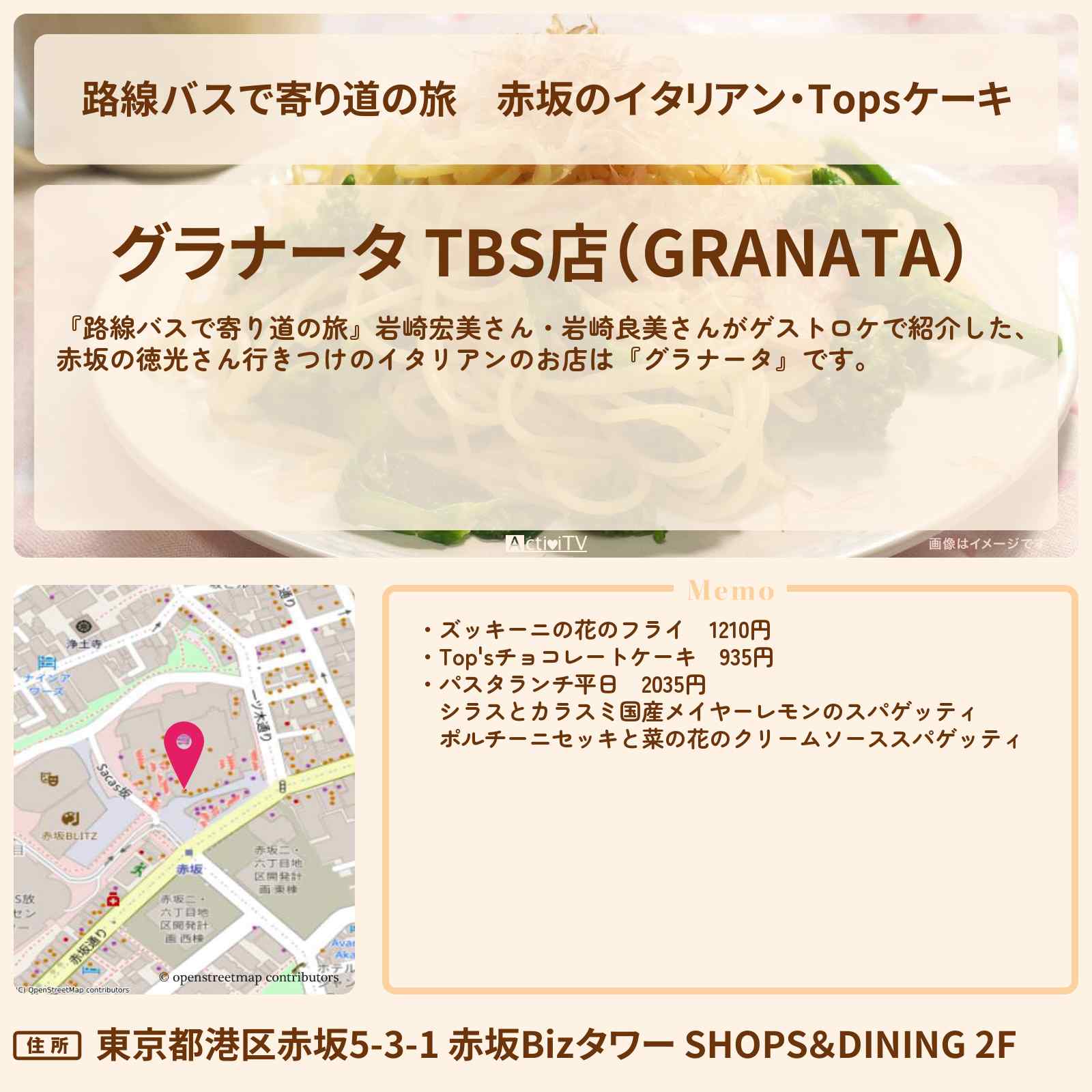 徳光さんが通うイタリアン 赤坂駅「グラナータ TBS店(GRANATA)」