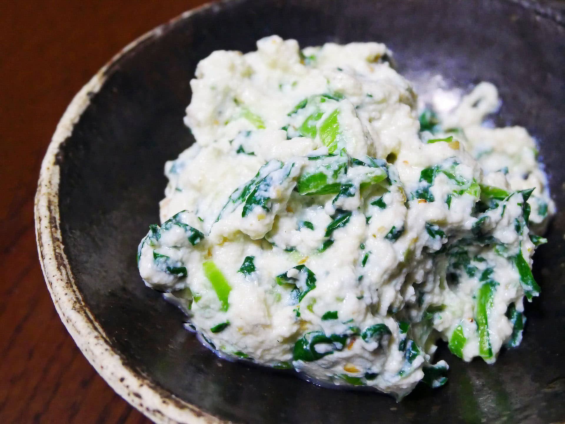 春を感じさせる彩り鮮やかな一品です。豆腐をベースにした優しい味わいの中に、菜の花のほろ苦さがアクセントとなり、食卓に彩りを加えます。