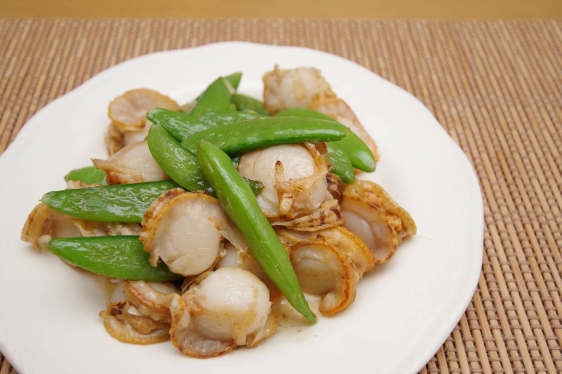 鮮やかな緑色のスナップえんどうと甘みたっぷりの帆立貝柱を使用した、春を感じさせる一品です。しょうがのピリッとした刺激が食欲をそそり、帆立の柔らかな食感とスナップえんどうのシャキシャキ感が絶妙にマッチします。火を通しすぎないことが食感を楽しむ秘訣です。