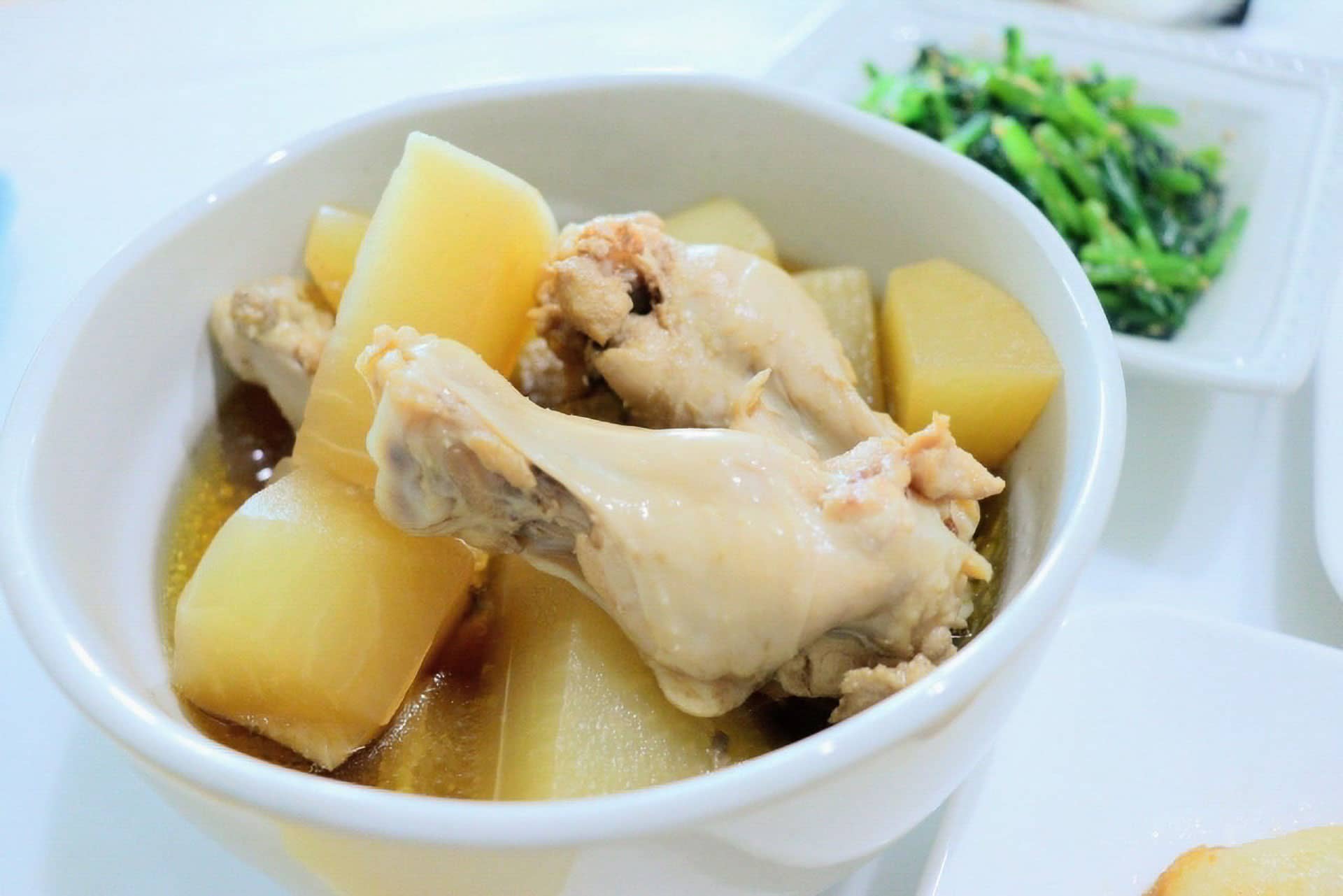 新鮮な新じゃがいものホクホク感と、鶏手羽元のジューシーな旨みが絶妙にマッチしています。レモンの爽やかな酸味が加わることで、一層引き立ちます。エリンギの食感もアクセントになり、深みのある味わいを楽しむことができます。