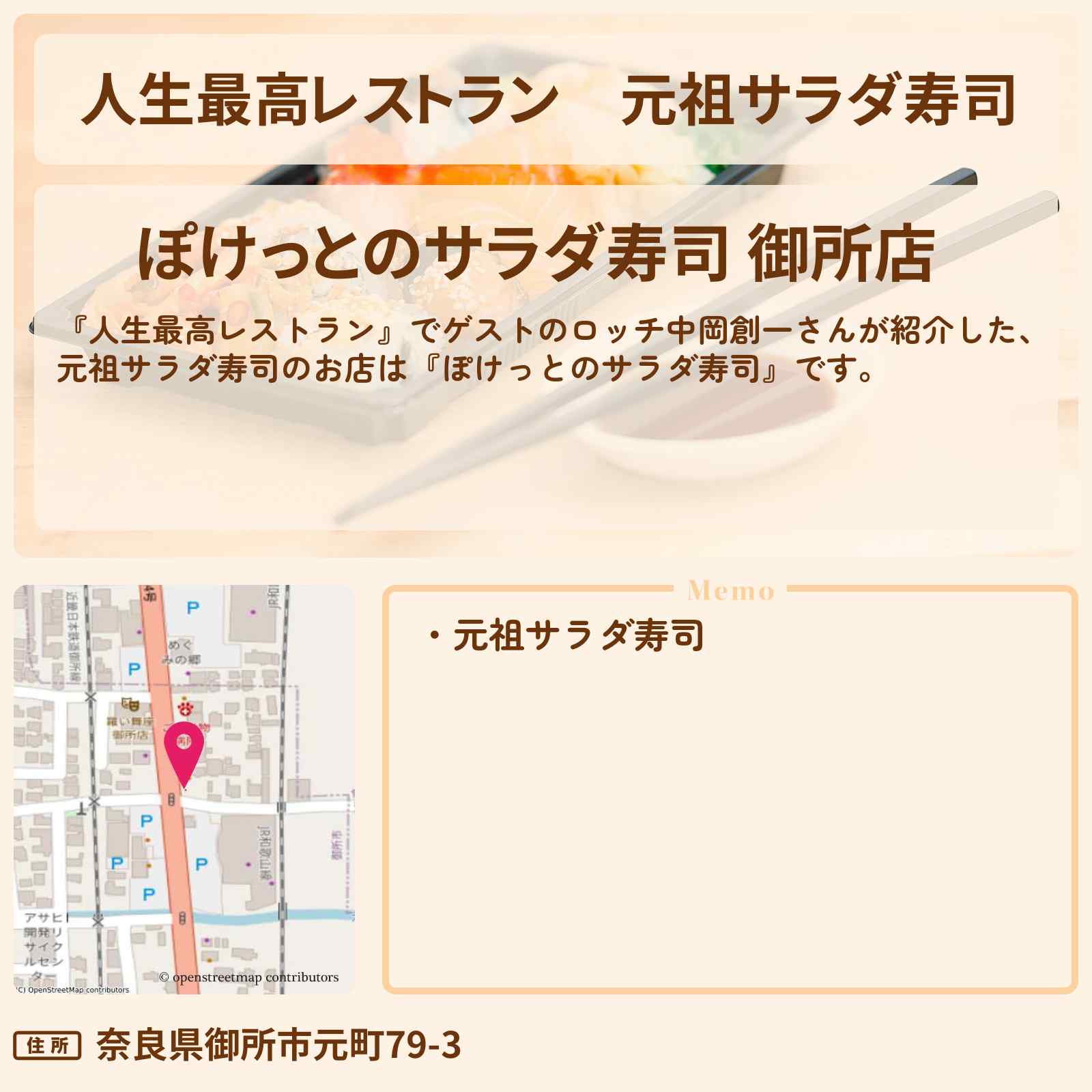 【人生最高レストラン】元祖サラダ寿司 ロッチ『ぽけっとのサラダ寿司』奈良県御所のお店の場所