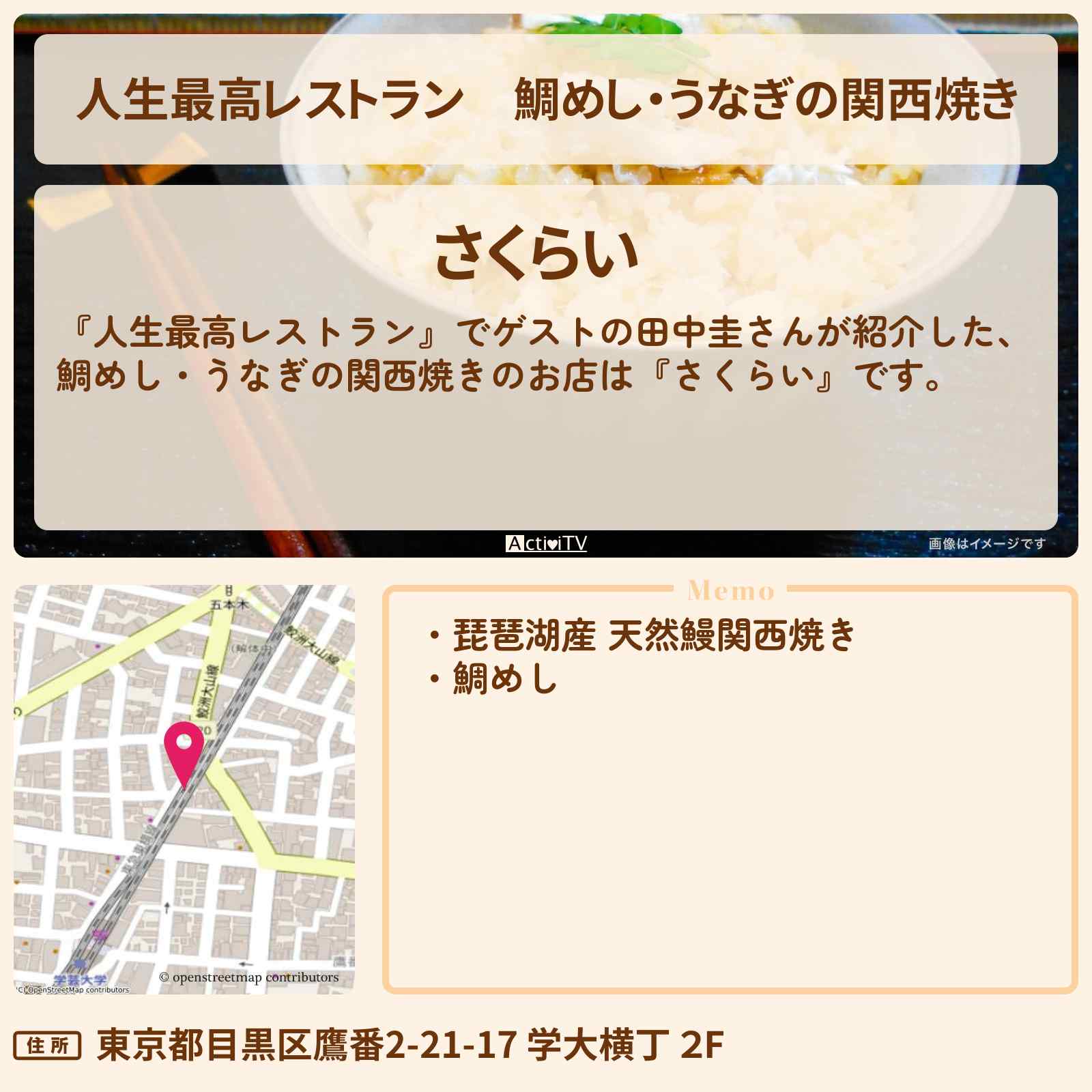 鯛めし・うなぎの関西焼き 学芸大学駅「さくらい」