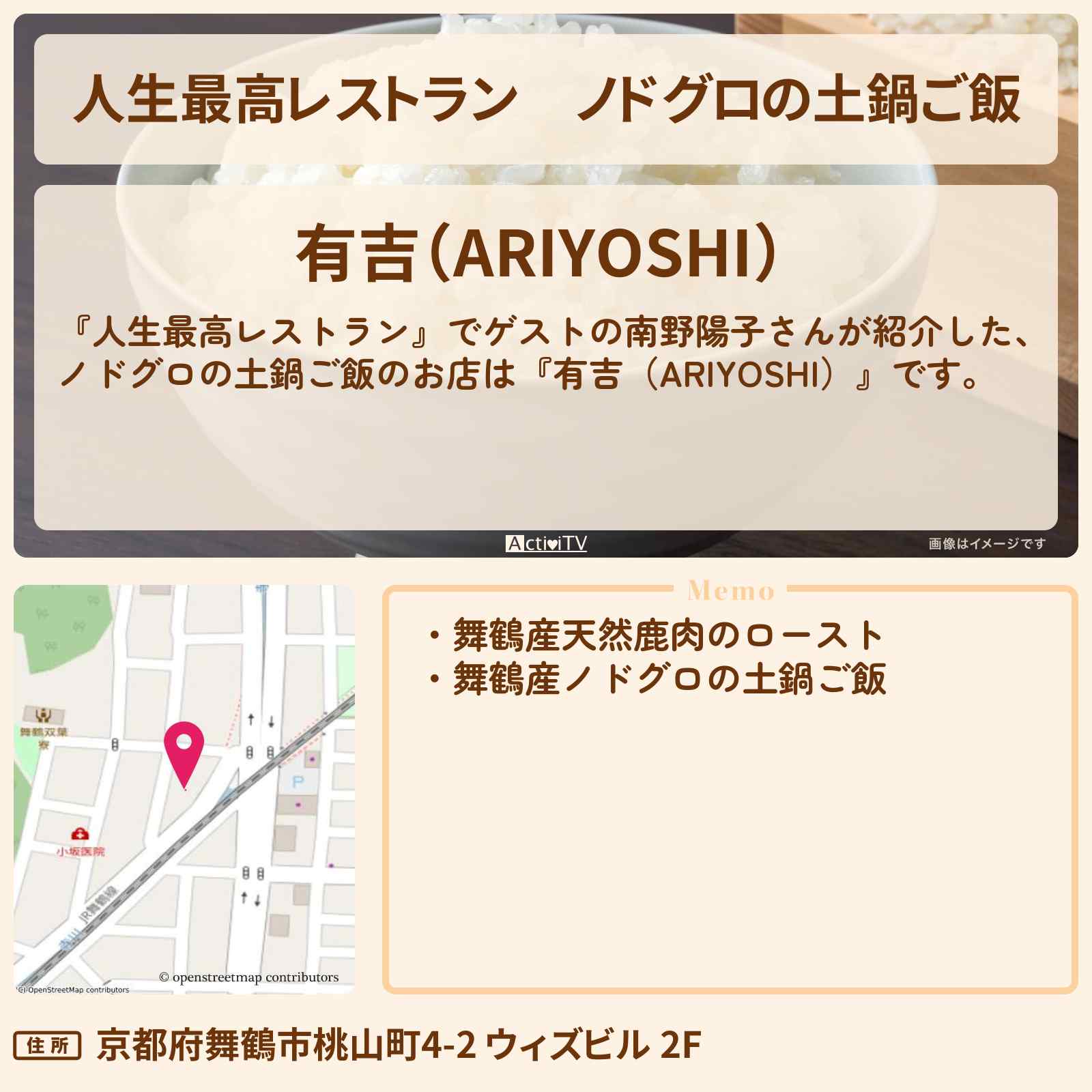 ノドグロの土鍋ご飯 東舞鶴駅「有吉(ARIYOSHI)」