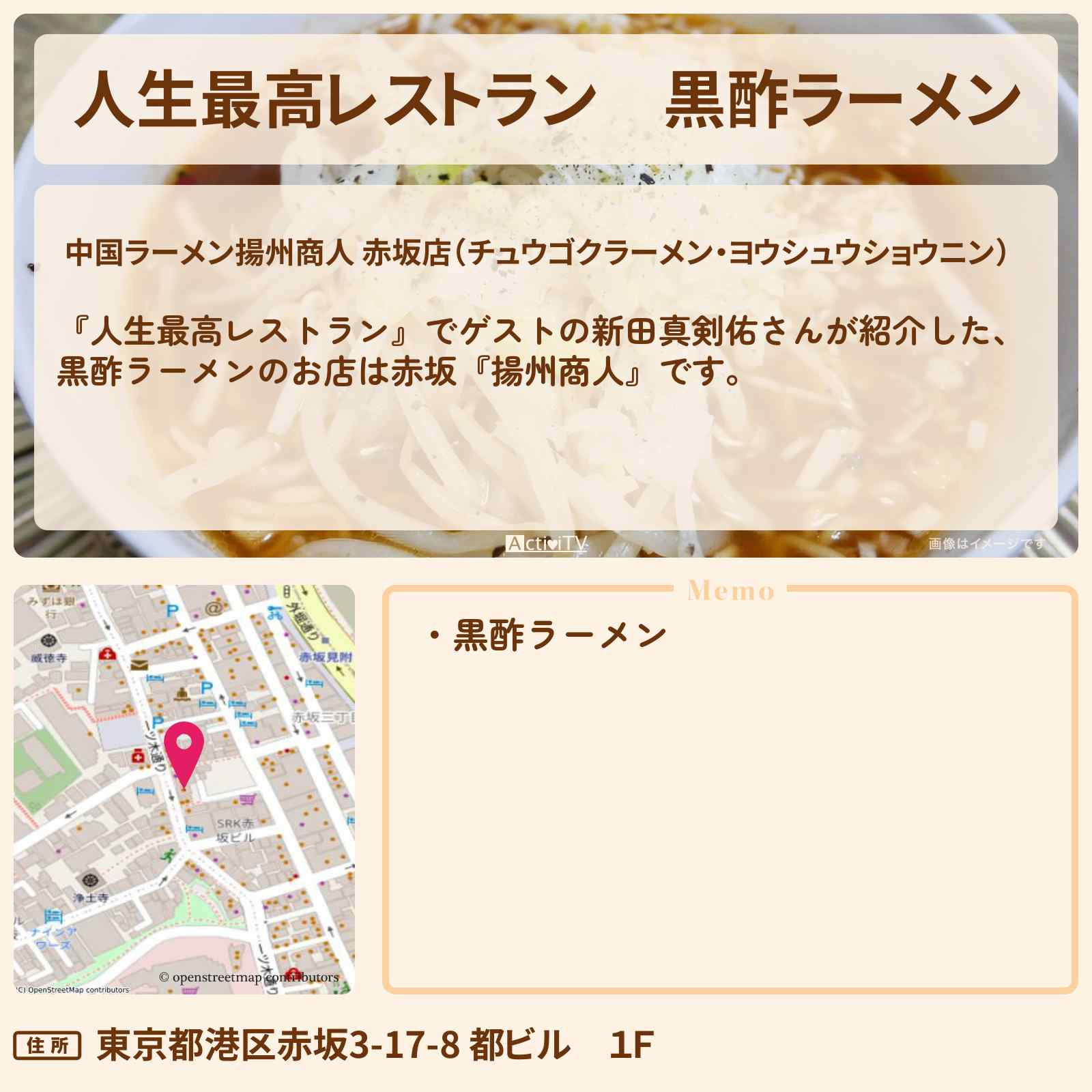 赤坂見附駅「中国ラーメン揚州商人 赤坂店(チュウゴクラーメン・ヨウシュウショウニン)」