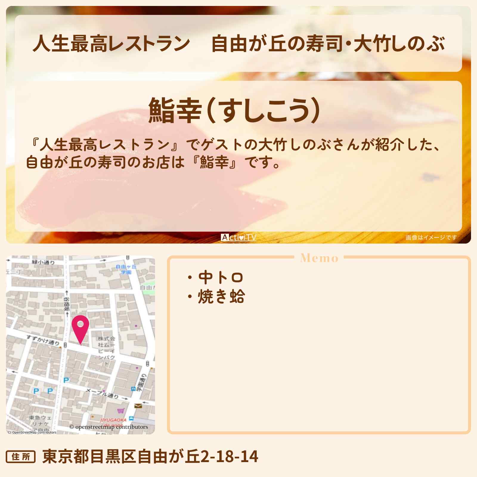| 住所 | 東京都目黒区自由が丘2-18-14 |