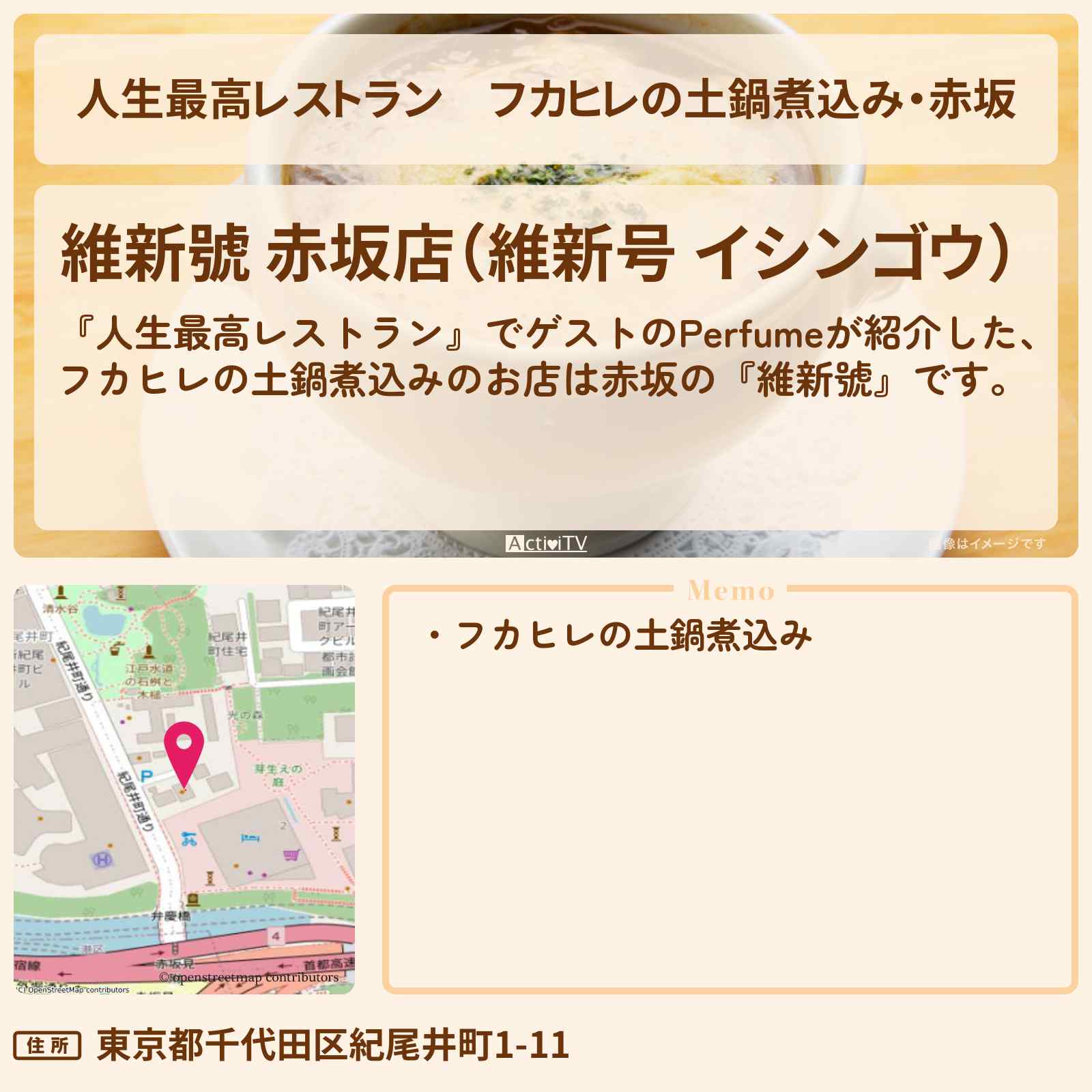 【人生最高レストラン】フカヒレの土鍋煮込み・赤坂『維新號』Perfume紹介のお店の場所