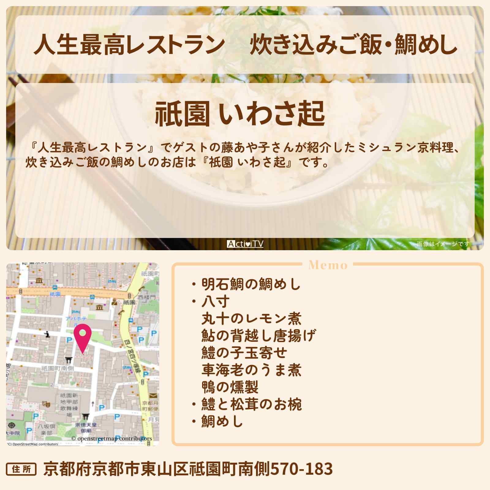 祇園の隠れ家店でいただく絶品鯛めし「祇園 いわさ起」