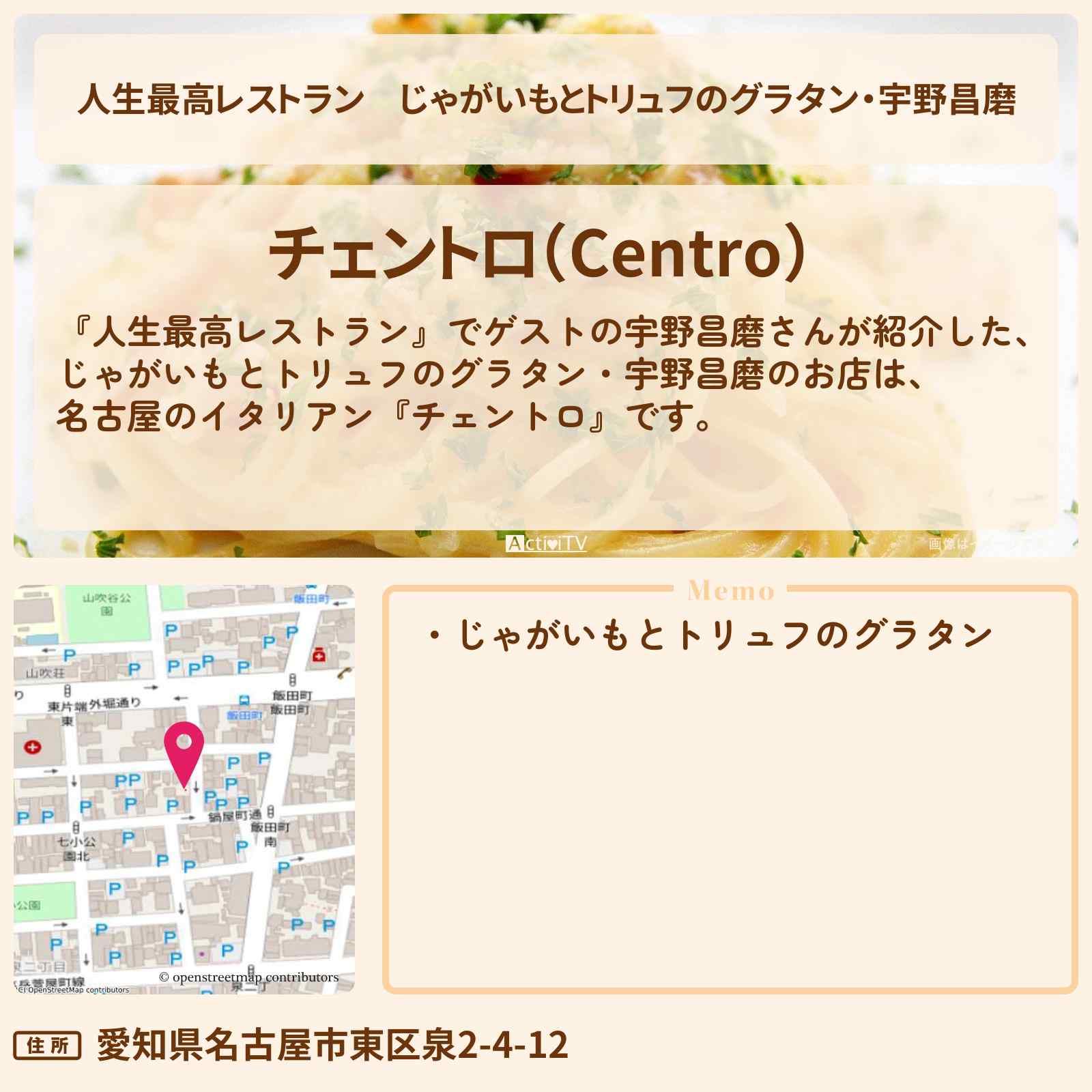 こちらは『チェントロ(名古屋市東区/イタリアン)』のお店ページです。実名でのオススメが2件集まっています。Rettyで食が好きなグルメな人たちからお店を探そう!…