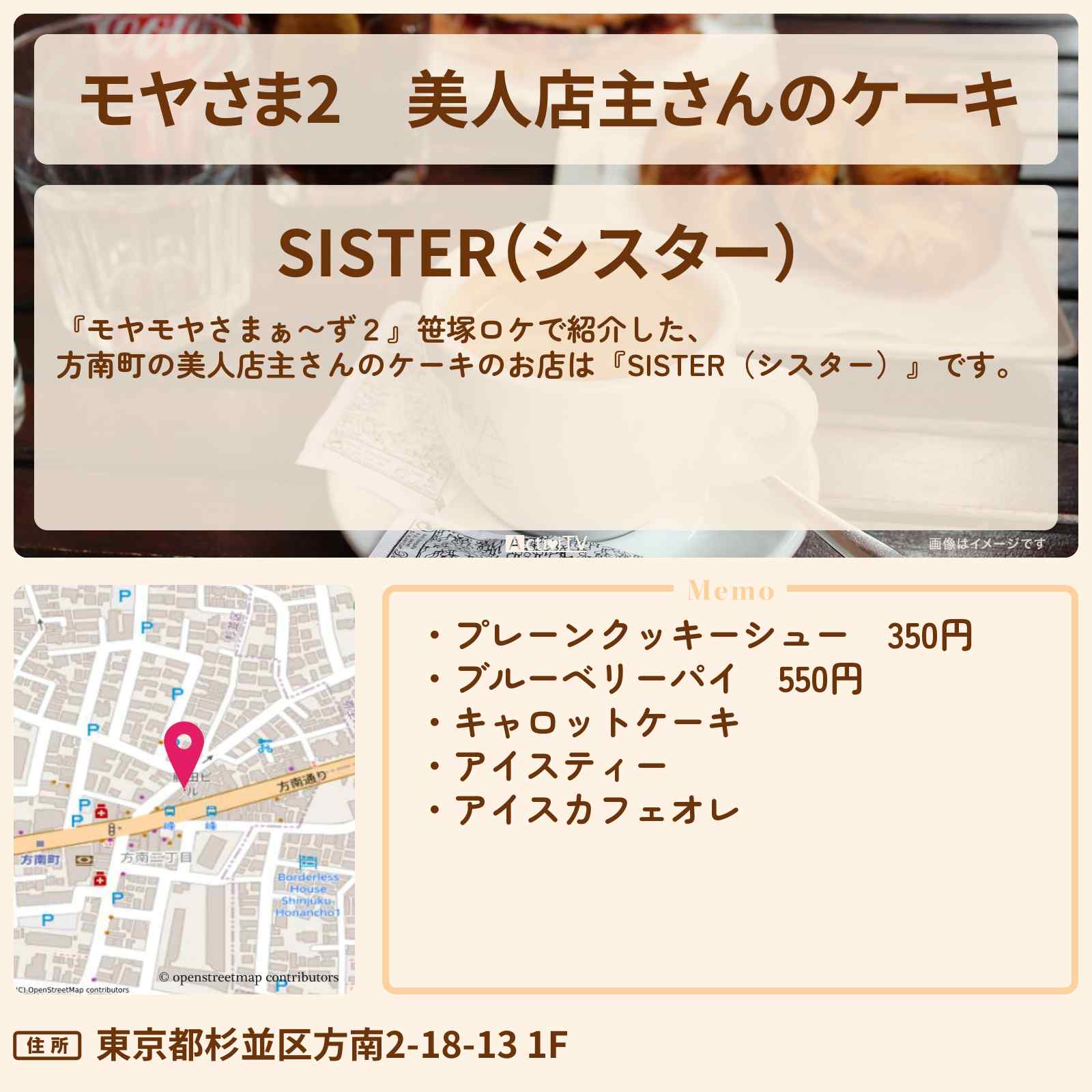 このお店の特徴は、女性店主が一人で切り盛りしている点です。店名から姉妹で経営していると思われがちですが、実際には店主が三姉妹の末っ子であることから『SISTER』と名付けられたそうです。店内では、ハンドドリップで丁寧に淹れたコーヒーとともに、手作りの焼き菓子やケーキを楽しむことができます。