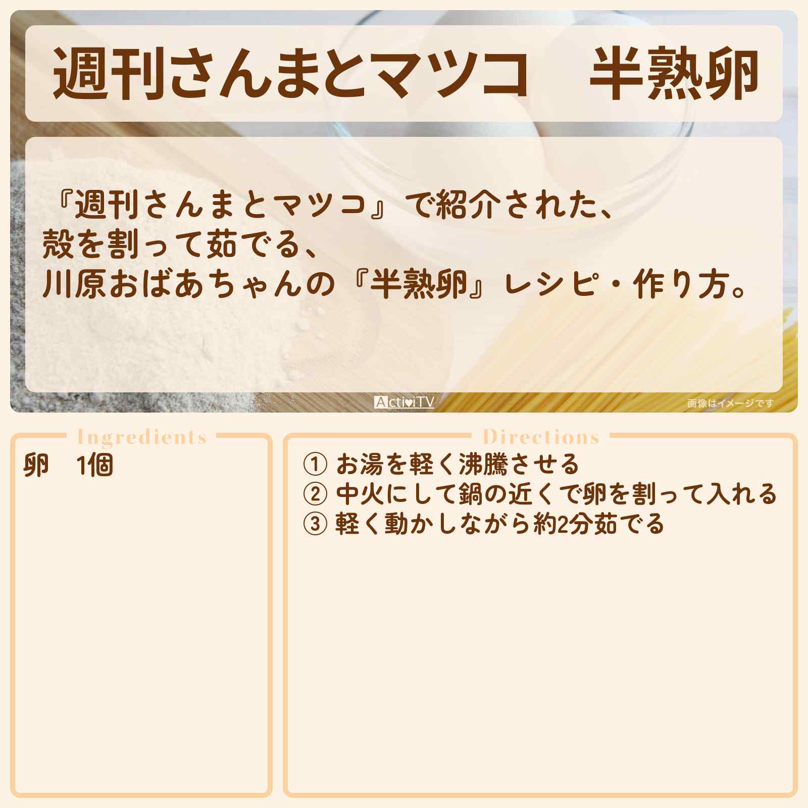 放送の【週刊さんまとマツコ】で紹介された、殻を割って茹でる、川原おばあちゃんの『半熟卵』レシピ・作り方。