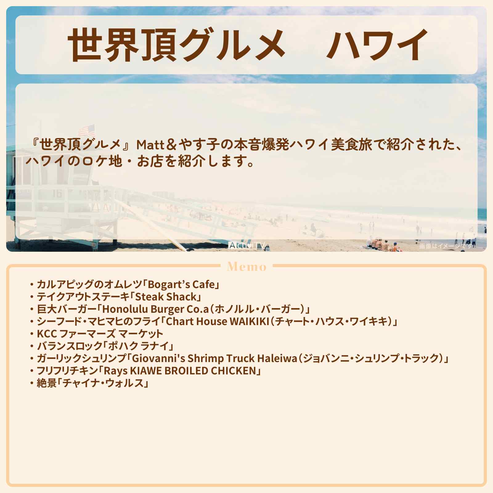| 住所 | ハワイ66-19 Kamehameha Hwy., Haleiwa, HI 96712 |