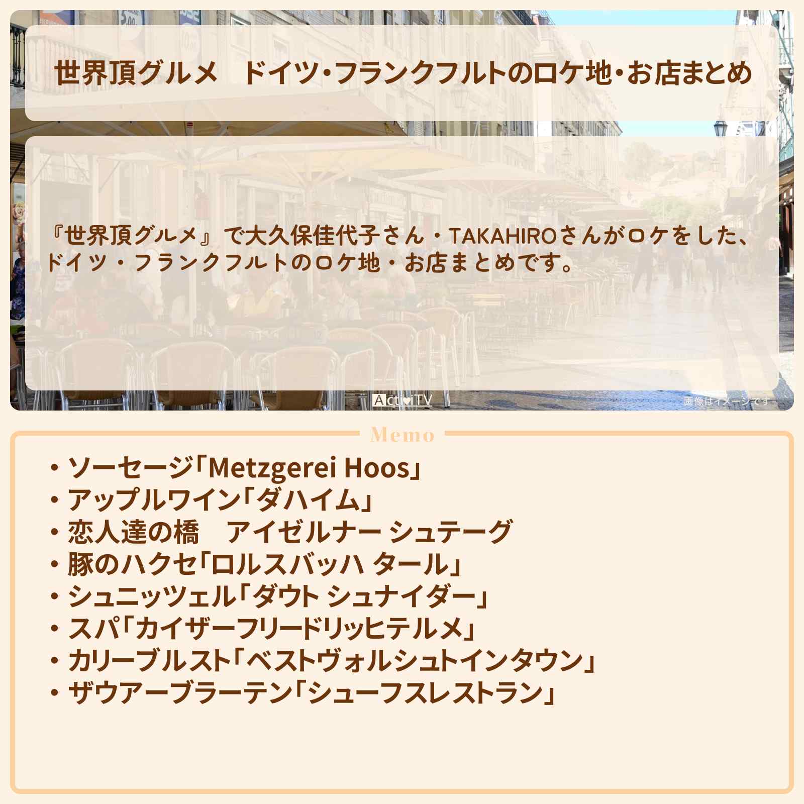 | 住所 | Schweizer Str. 30, 60594 Frankfurt am Main, ドイツ |