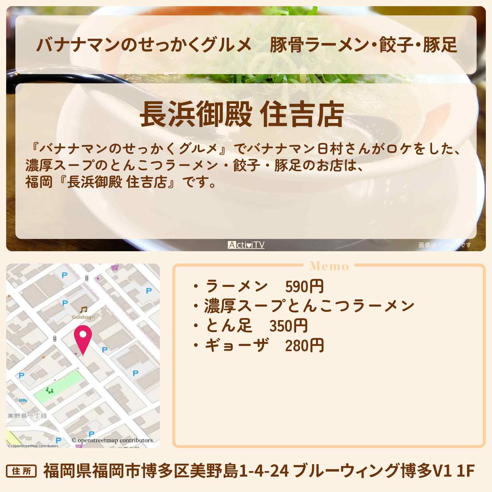 【バナナマンのせっかくグルメ】豚骨ラーメン・餃子・豚足 福岡『長浜御殿 住吉店』お店の場所〔日村勇紀〕