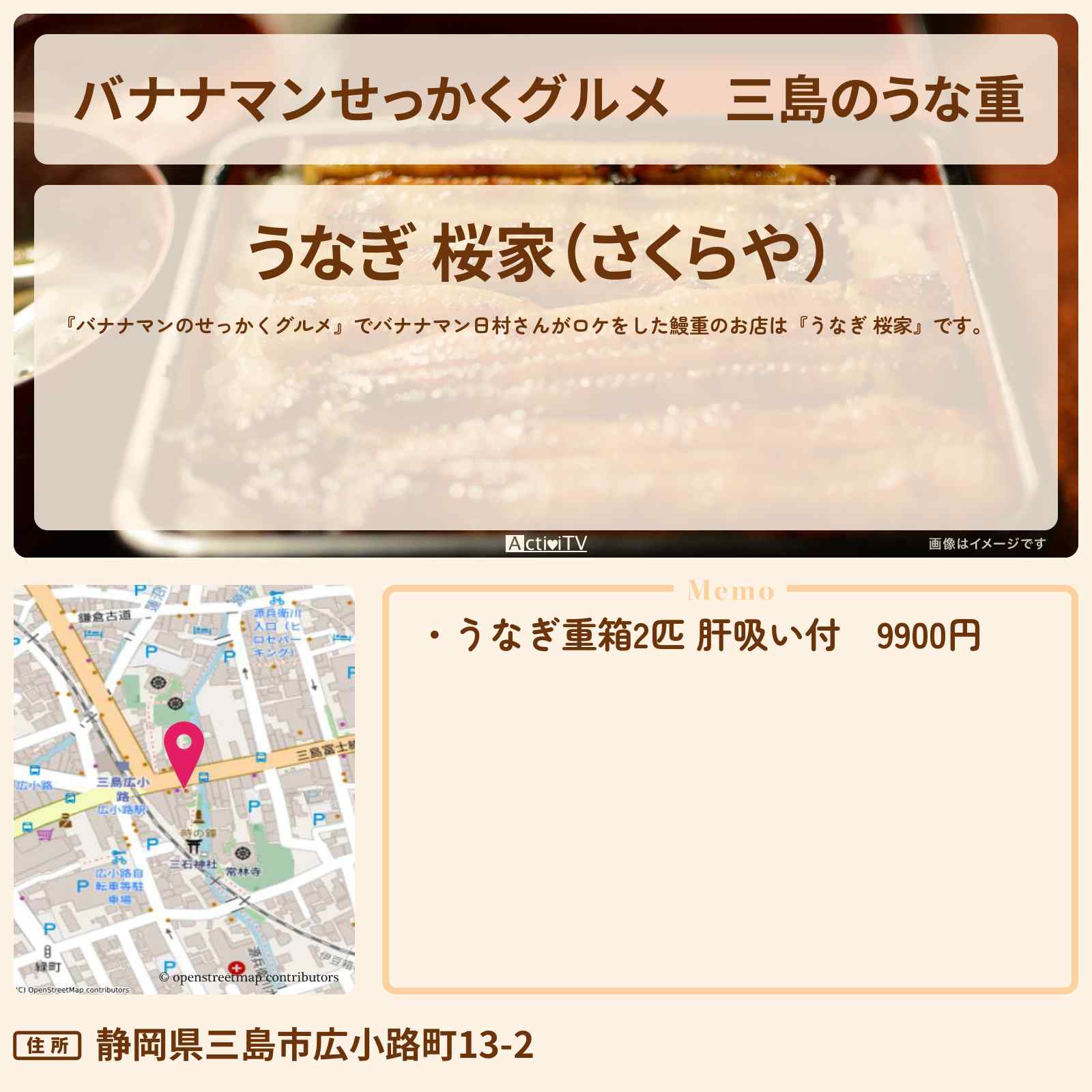 | 住所 | 静岡県三島市広小路町13-2 |