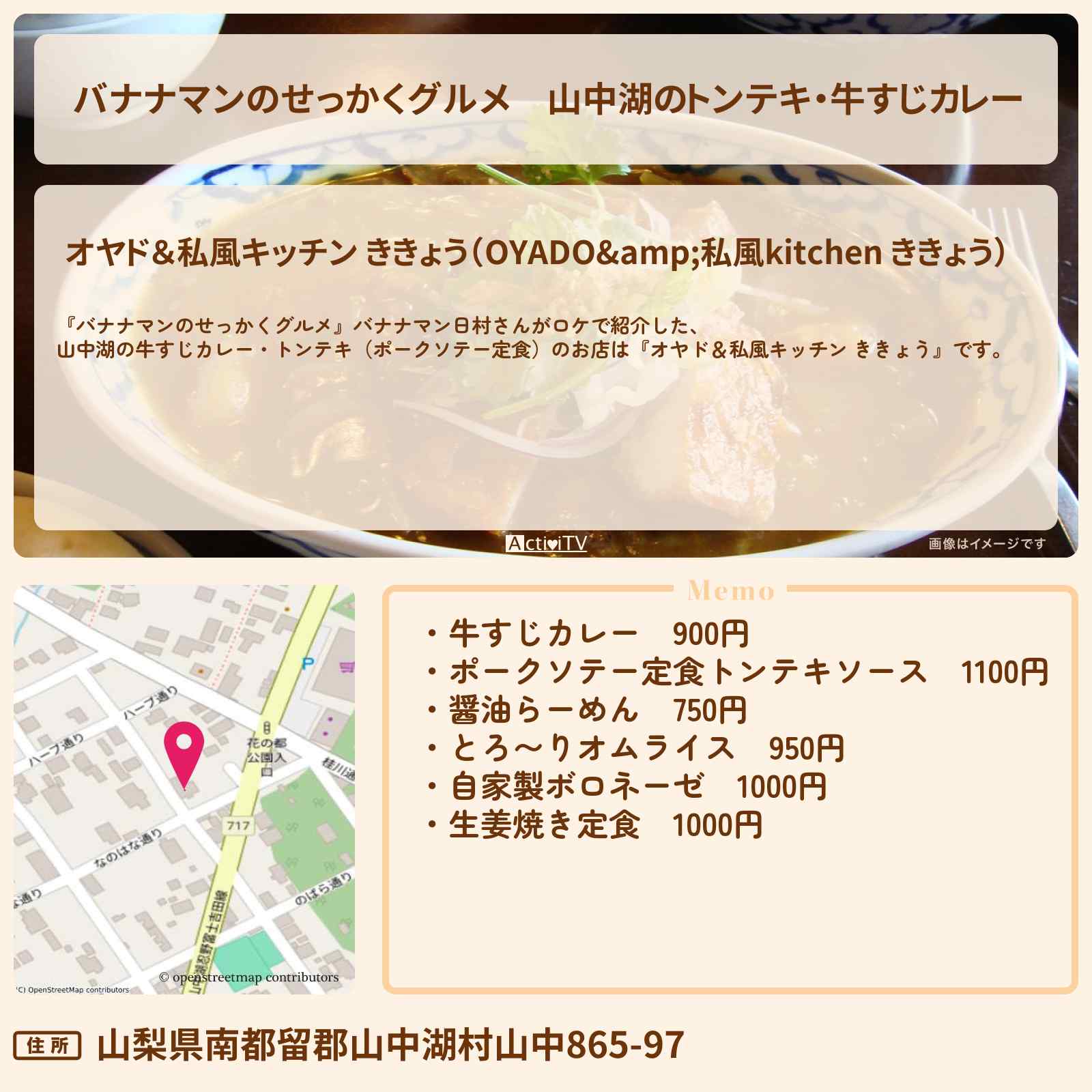 「キッチンききょう」の情報は「山中湖観光サイト」で。ポークソテー、生姜焼き、パスタ、カレー、ラーメン等、化学調味料を使わず、心と身体にやさしい手作りメニューでゆったりした時間を提供。…