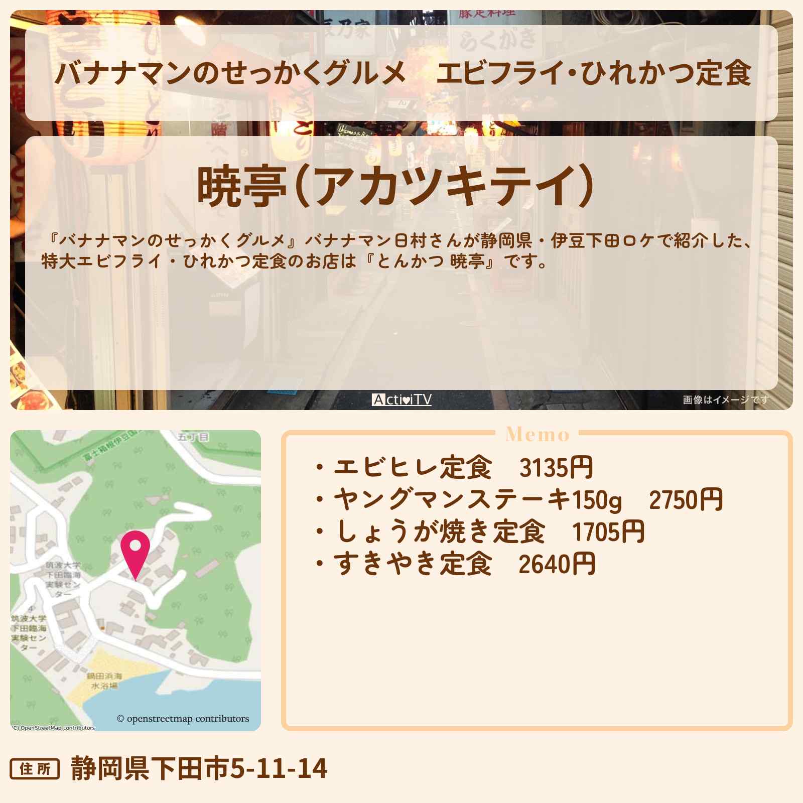 特大エビフライ&ひれかつ定食 伊豆急下田駅「暁亭(アカツキテイ)」