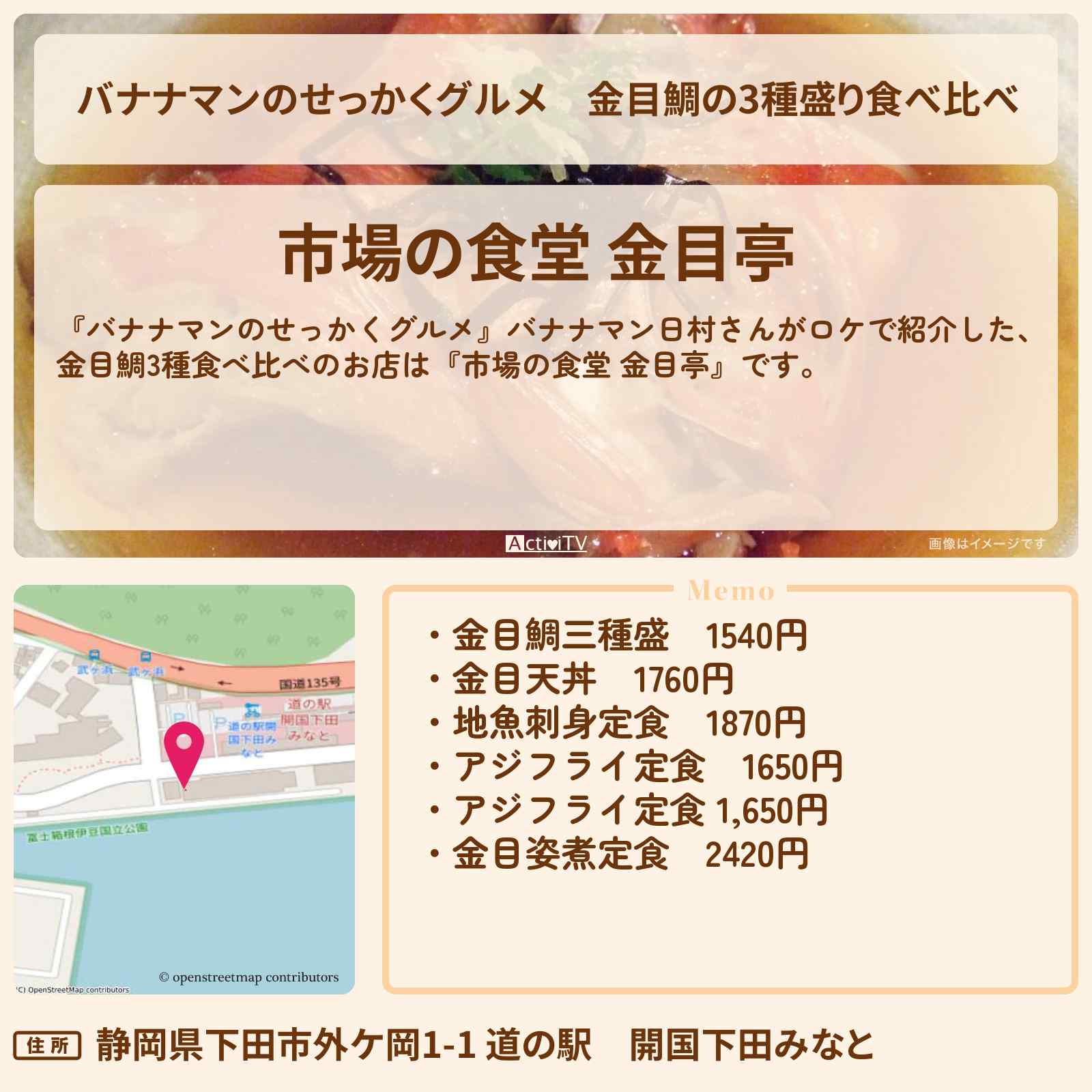 金目鯛3種食べ比べ 伊豆急下田駅「市場の食堂 金目亭」