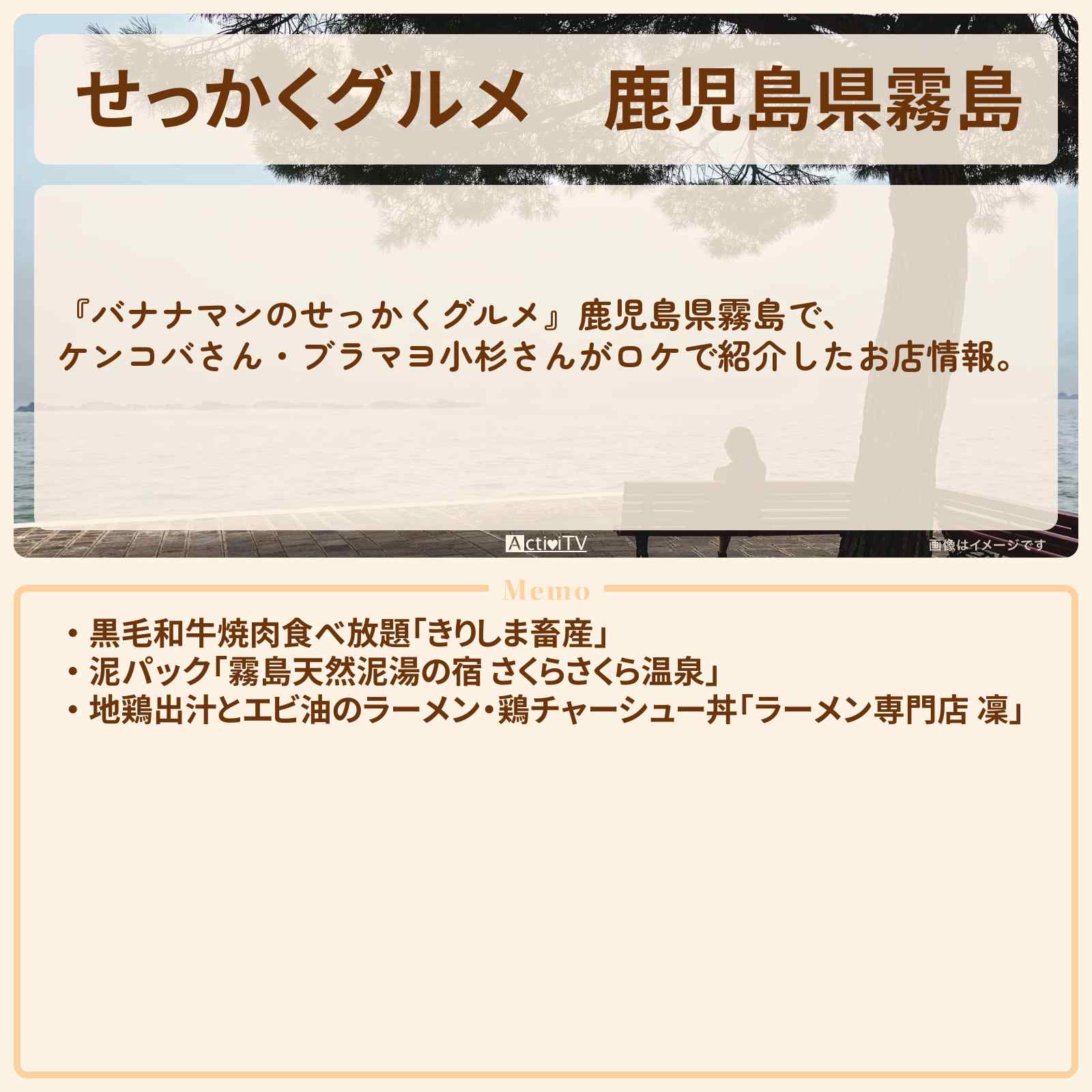 ロケではA4・A5黒毛和牛焼肉食べ放題「きりしま畜産」や地鶏出汁とエビ油のラーメンの凜などを巡りました。