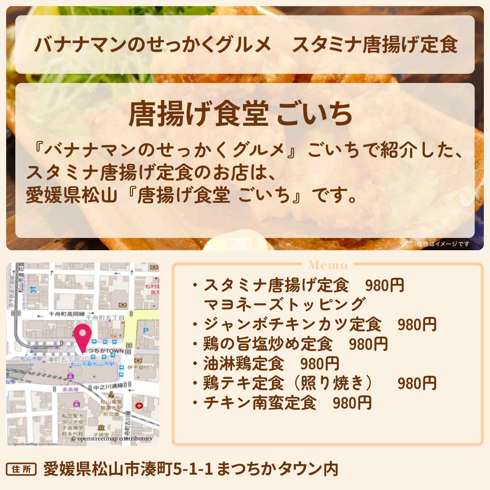 スタミナ唐揚げ定食 松山市駅「唐揚げ食堂 ごいち」