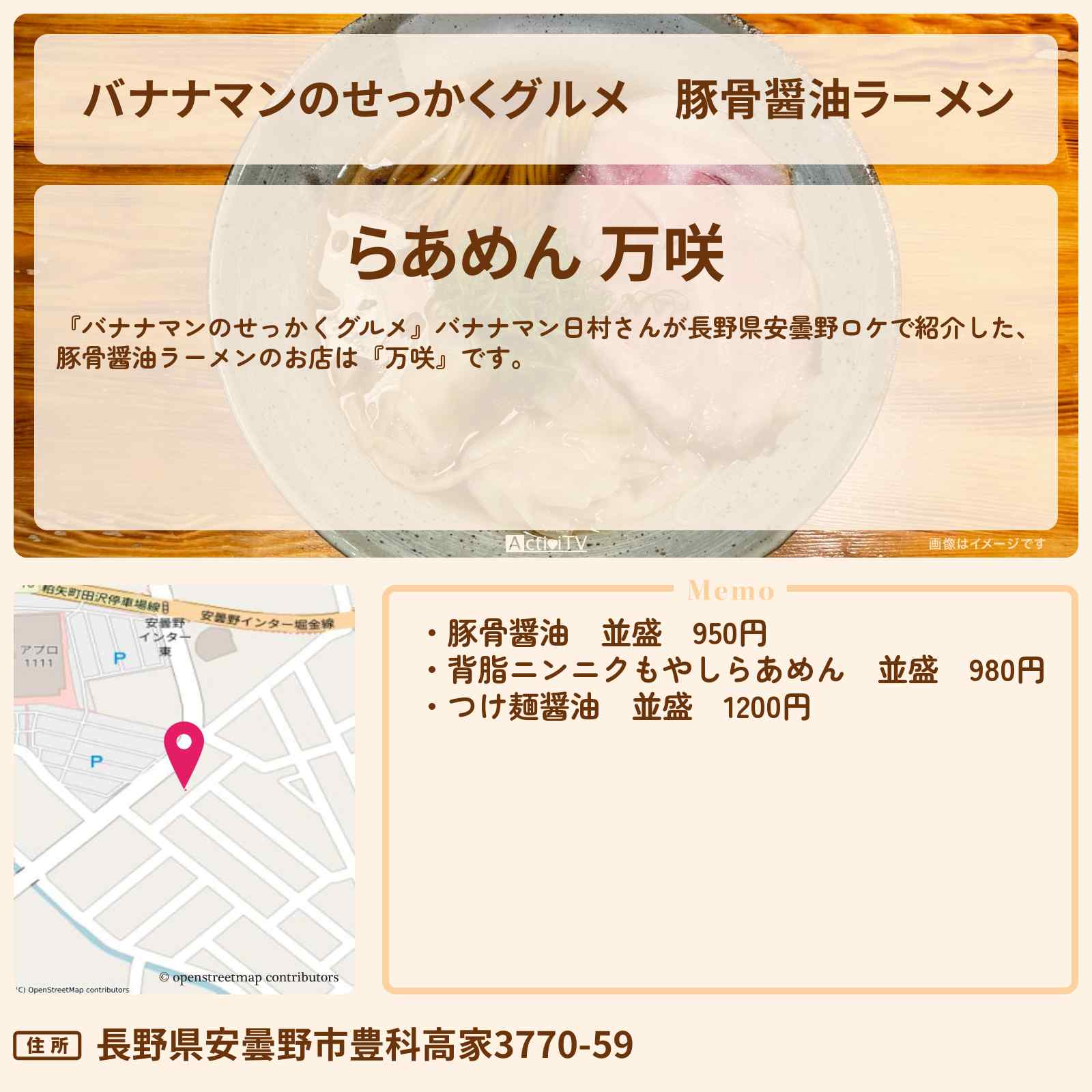 [ラーメン好き人気店] こちらは『らあめん 万咲(安曇野/ラーメン)』のお店ページです。実名でのオススメが31件集まっています。Rettyで食が好きなグルメな人たちからお店を探そう!…