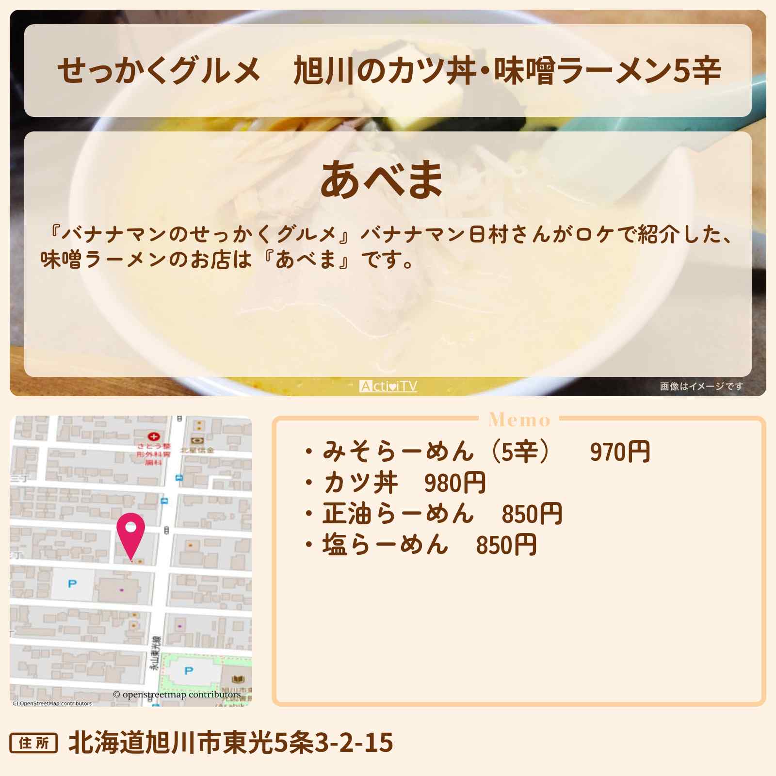 【せっかくグルメ】旭川のカツ丼・味噌ラーメン5辛『あべま』北海道ロケのお店情報〔日村勇紀〕