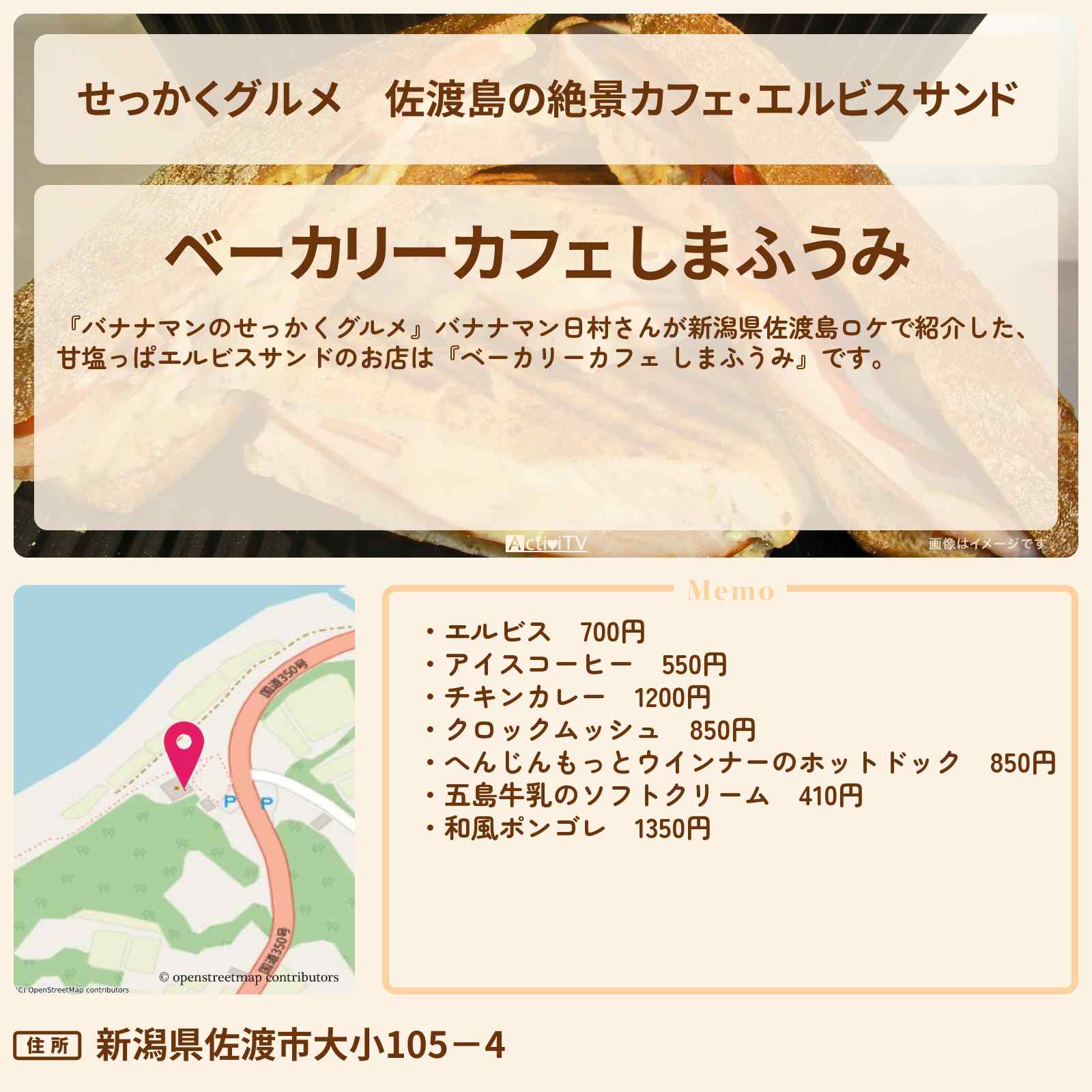 人気は佐渡島チーズトースト。佐渡の形をしたチーズが乗った見た目にも楽しいこの一品は、サクサクのトースト、濃厚なチェダーチーズとゴーダチーズの2種類のブレンド、隠し味のバターとあめ色に炒めた佐渡産玉ねぎの相性が抜群です。