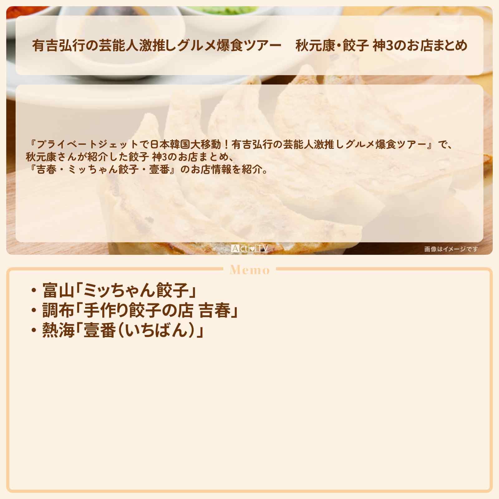 創業から30年以上にわたり、地元の方々や観光客に愛され続けています。著名人のファンも多く、作詞家の秋元康さんは、この店の餃子を味わうために東京から足を運ぶこともあるそうです。