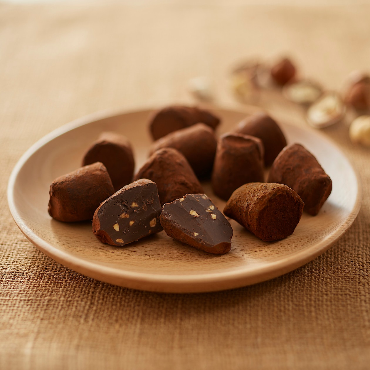 - カカオトリュフにピスタチオが練り込まれたチョコ