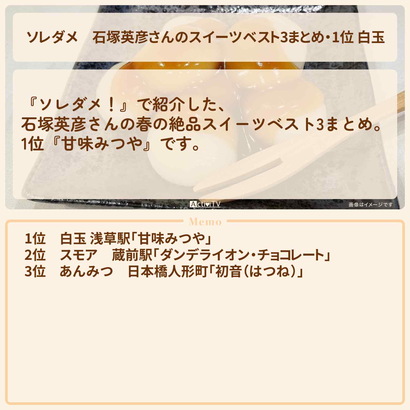 1位 白玉 浅草駅「甘味みつや」